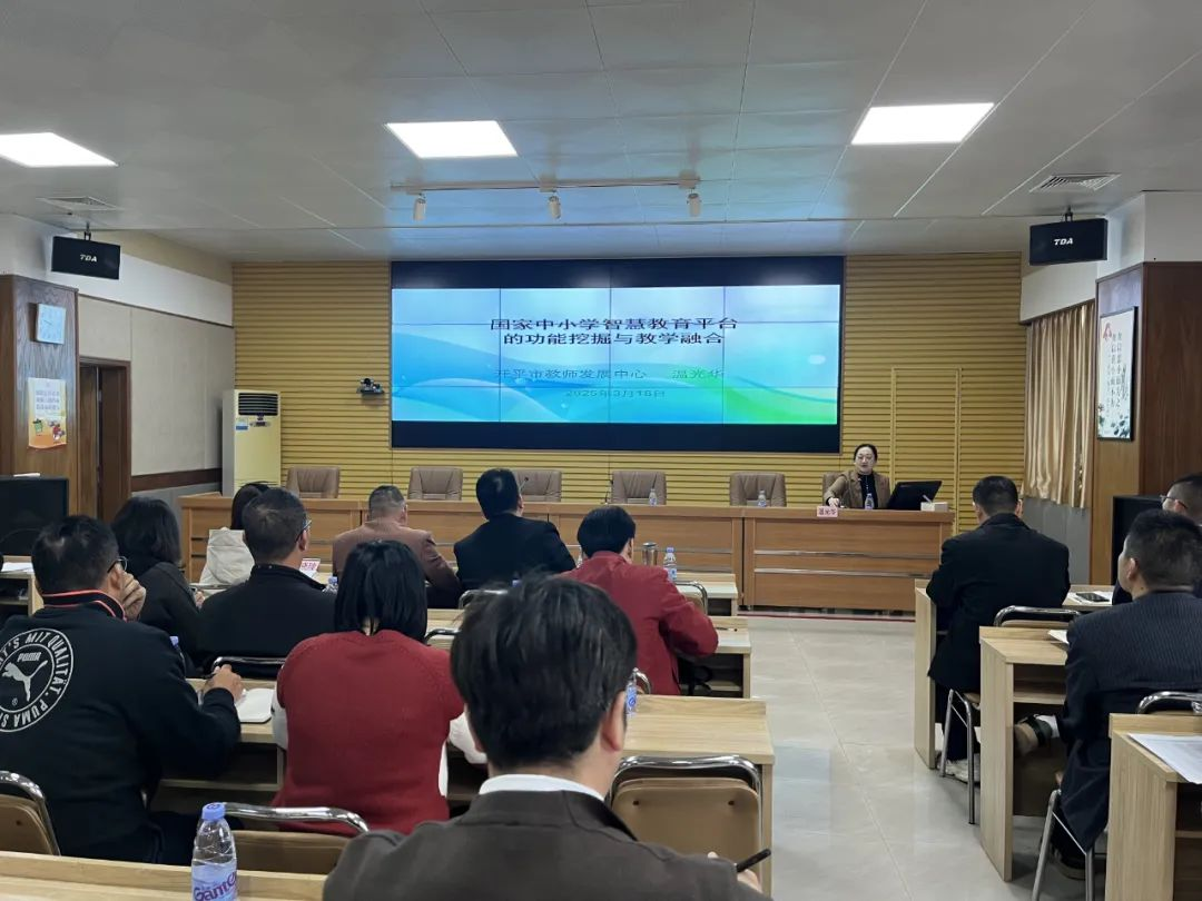 研修活動設置了四場專題講座,內(nèi)容緊扣時代需求與教學痛點,通過政策引領(lǐng)、案例分享、技術(shù)實操等形式展開。首先,小學道德與法治教研員溫光華作題為《牢記使命勇?lián)?,深學篤行譜新篇》的講座,深入解讀2025年全國兩會及各級教育會議精神,強化思政教師育人使命與責任擔當。隨后,溫老師又以《國家中小學智慧教育平臺的功能挖掘與教學融合》為題,帶領(lǐng)老師們探索數(shù)字化資源與學科教學的深度融合路徑,賦能課堂教學提質(zhì)增效。