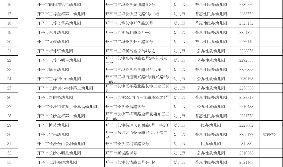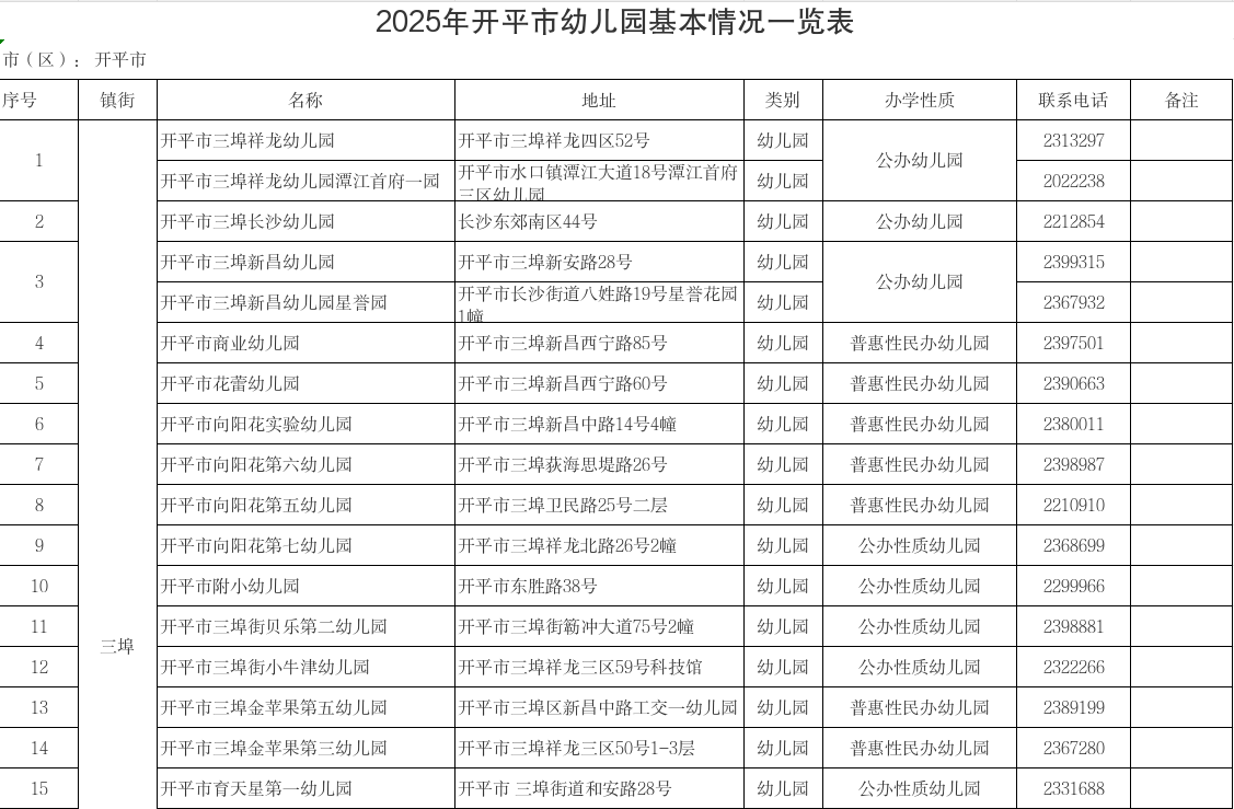 2025年開(kāi)平市幼兒園基本情況一覽表