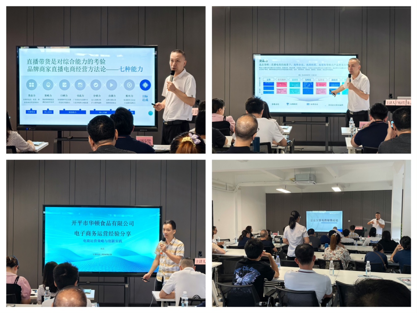 在培訓(xùn)班上,首先由廣州航海學(xué)院工商管理系朱志輝教授進行授課,朱教授圍繞“品牌商家直播七大運營能力”這一主題,針對貨品力、策略力、口碑力、引流力、分銷力、自播力和粉絲力這七種能力講解直播電商營銷方法論。隨后,在企業(yè)經(jīng)驗分享環(huán)節(jié),開平市本土電商銷售較為突出的開平市浩旺佳蛋制品有限公司和開平市華頓食品有限公司作為企業(yè)代表,進行電商銷售經(jīng)驗分享。最后,進行互動交流,現(xiàn)場為參訓(xùn)人員答疑解惑。