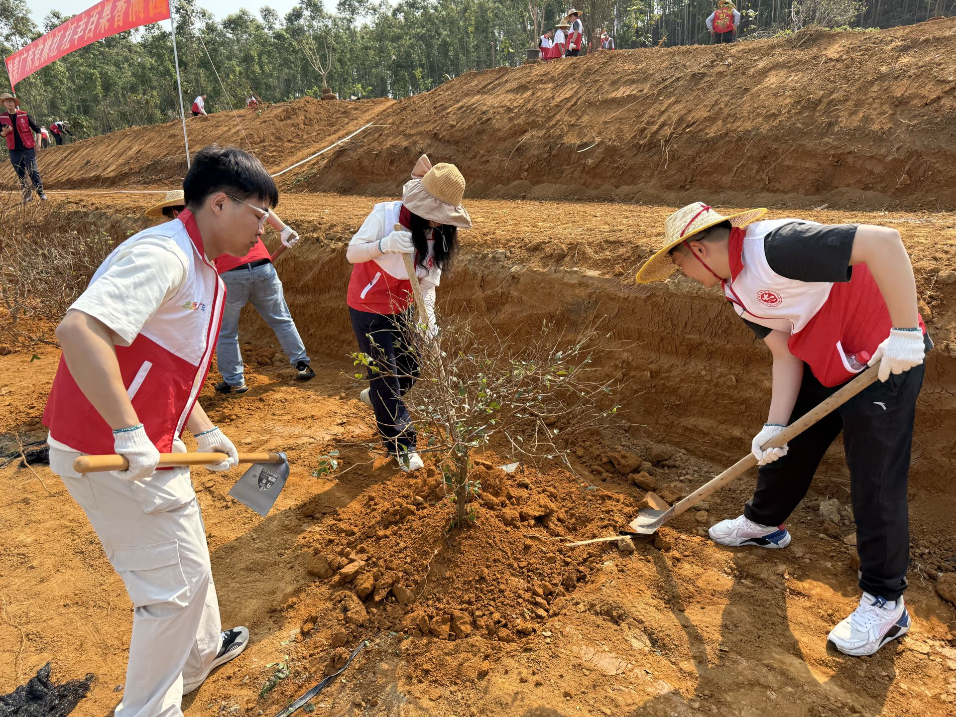 植樹活動中,大家在專業(yè)人員的指導(dǎo)下,相互配合,一起揮鍬填土、扶苗填坑、提水澆灌,共同栽種了100余棵果樹。一排排整齊的樹苗在春風(fēng)中扎根土地、迎風(fēng)而立,煥發(fā)出盎然生機(jī)。