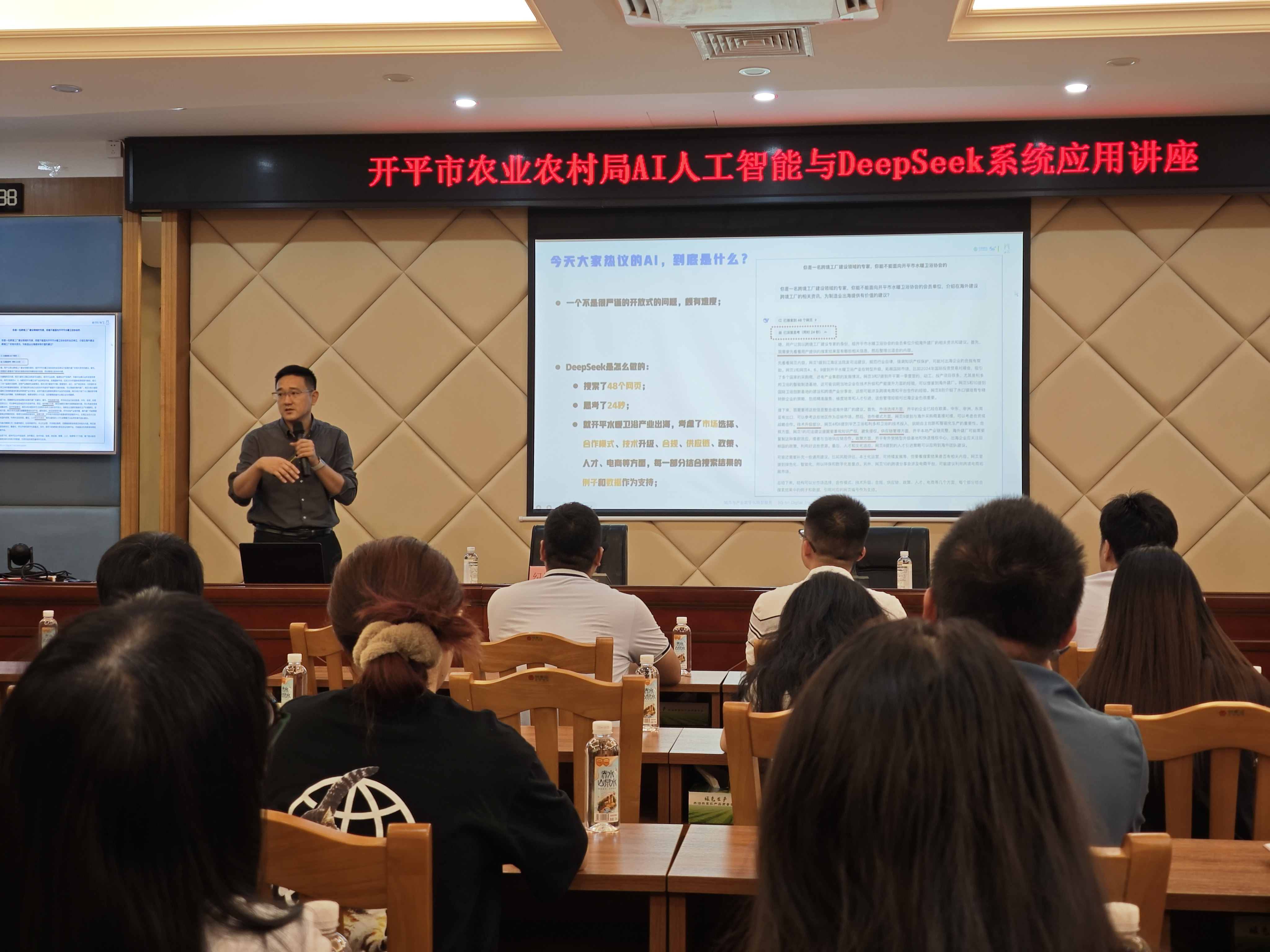 2025年4月11日,開平市農(nóng)業(yè)農(nóng)村局為深入貫徹落實中央一號文件關(guān)于“發(fā)展農(nóng)業(yè)新質(zhì)生產(chǎn)力”的部署要求,推動農(nóng)業(yè)數(shù)字化轉(zhuǎn)型,提升政務(wù)與農(nóng)業(yè)工作效率,開平市農(nóng)業(yè)農(nóng)村局聯(lián)合中國移動開平分公司舉辦《AI人工智能與DeepSeek系統(tǒng)應(yīng)用》專題培訓。中國移動開平分公司總經(jīng)理、開平市“百千萬工程”專家智庫成員紀增暉受邀授課,市農(nóng)業(yè)農(nóng)村局局系統(tǒng)全體干部參加學習。 培訓會上,紀增暉總經(jīng)理結(jié)合國家級“5G+智慧園區(qū)”建設(shè)經(jīng)驗及廣東省“數(shù)字政府2.0”頂層設(shè)計實踐,深入解析了AI人工智能與DeepSeek系統(tǒng)在政務(wù)辦公、農(nóng)業(yè)數(shù)據(jù)分析、智慧決策等場景的應(yīng)用。通過實際案例,他展示了如何利用AI技術(shù)優(yōu)化工作流程、提升效率,并展望了農(nóng)業(yè)數(shù)字化發(fā)展的廣闊前景。紀增暉指出,DeepSeek系統(tǒng)作為新一代智能工具,可高效處理農(nóng)業(yè)數(shù)據(jù)、輔助政策制定,并為基層工作提供精準支持。 市農(nóng)業(yè)農(nóng)村局黨組書記、局長鄒明夫總結(jié)表示,此次培訓為農(nóng)業(yè)農(nóng)村工作者提供了前沿的技術(shù)視角,要求全體干部職工積極運用AI工具,探索數(shù)字化手段在農(nóng)業(yè)生產(chǎn)、鄉(xiāng)村治理中的應(yīng)用,助力開平市農(nóng)業(yè)高質(zhì)量發(fā)展。未來,開平市將持續(xù)推進農(nóng)業(yè)科技協(xié)同創(chuàng)新,加快先進技術(shù)落地,為鄉(xiāng)村振興提供堅實的技術(shù)支撐。