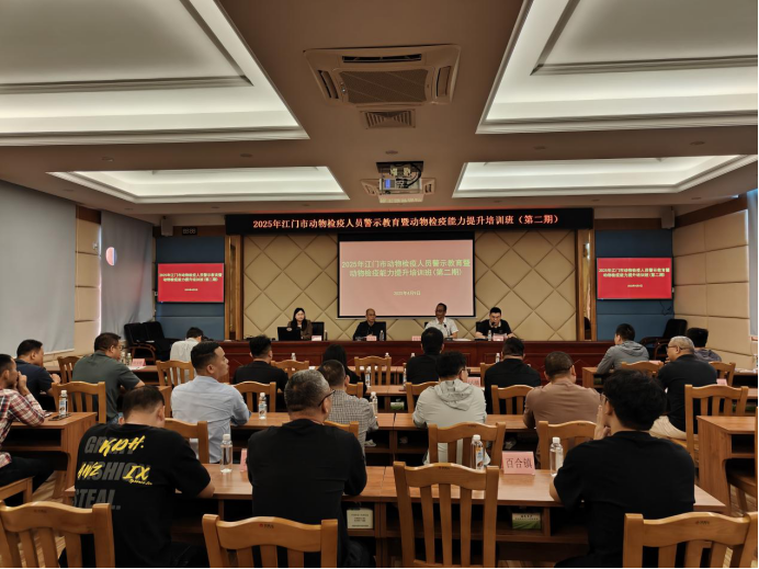 4月9日上午,2025年江門市動物檢疫人員警示教育暨動物檢疫能力提升培訓(xùn)班(第二期)在我局成功舉辦,江門市動物衛(wèi)生技術(shù)服務(wù)中心領(lǐng)導(dǎo)及業(yè)務(wù)同志,我局分管領(lǐng)導(dǎo)以及相關(guān)股室、事業(yè)單位、各鎮(zhèn)(街道)檢疫工作人員40余人參與了培訓(xùn)。 培訓(xùn)班議程豐富,涵蓋多項重要內(nèi)容。培訓(xùn)內(nèi)容囊括“以案說法” 警示教育、動物檢疫法律法規(guī)及最新工作要求的講解、畜禽產(chǎn)地檢疫和屠宰檢疫業(yè)務(wù)知識要點的剖析等方面,會議結(jié)尾階段與會人員就動物檢疫工作疑點問題進行交流探討。 培訓(xùn)班進一步強化了全市動物檢疫隊伍管理,規(guī)范檢疫行為,提升檢疫人員的專業(yè)素養(yǎng)和紀(jì)律意識,為打造一支政治、業(yè)務(wù)、作風(fēng)過硬的動物檢疫隊伍奠定了基礎(chǔ)。
