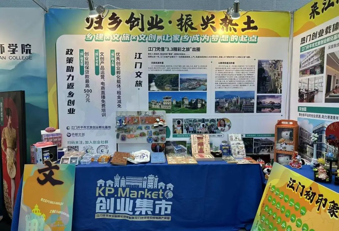 開平市持續(xù)推動返鄉(xiāng)入鄉(xiāng)創(chuàng)業(yè)工作,充分發(fā)揮平臺優(yōu)勢,為青年返鄉(xiāng)入鄉(xiāng)提供“一站式”的創(chuàng)業(yè)就業(yè)服務,吸引著一批又一批青年創(chuàng)業(yè)者利用開平豐富的農文旅資源,返鄉(xiāng)入鄉(xiāng)描繪創(chuàng)業(yè)夢想的藍圖。招聘會當天的僑鄉(xiāng)特色文創(chuàng)展位上展示了多家入駐江門開平市文旅創(chuàng)業(yè)孵化基地(下稱基地)的企業(yè)以及坐落于開平的廣東首家先鋒書店的最新文創(chuàng)產品,近百款的文創(chuàng)產品囊括了冰箱貼、鑰匙扣、明信片等常見的小物件,也有鉤織糧倉、“鵝們”公仔、碉樓微景觀模型等定制類、IP類特有款式,每一款都能讓求職者領略到僑鄉(xiāng)文化與開平特色。