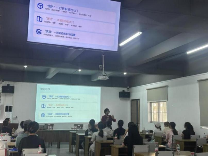 緊接著,活動(dòng)邀請(qǐng)到兩位職業(yè)規(guī)劃領(lǐng)域的導(dǎo)師開展授課。職業(yè)生涯規(guī)劃師、現(xiàn)江門博高咨詢管理有限公司高級(jí)合伙人——陳小玲開展“職場(chǎng)加速器——讓你快速拿到Offer”主題授課,內(nèi)容包含簡(jiǎn)歷的設(shè)計(jì)與制作、面試的準(zhǔn)備以及技巧運(yùn)用。廣東冠星新型材料有限公司行政人事部經(jīng)理胡國(guó)城則針對(duì)應(yīng)屆畢業(yè)生初進(jìn)職場(chǎng)的求職技巧與職業(yè)規(guī)劃進(jìn)行授課,幫助高校生掌握實(shí)用有效的求職技巧。