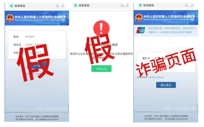 這類詐騙信息的常見套路是利用非法途徑,獲取網(wǎng)民手機(jī)號、微信號或郵箱賬號等,“編個(gè)理由”發(fā)送虛假信息,誘導(dǎo)群眾點(diǎn)擊鏈接或掃描二維碼,進(jìn)入假冒的“官方”網(wǎng)站或小程序等,并填寫身份證、銀行卡、密碼、驗(yàn)證碼等個(gè)人信息,以達(dá)到騙取錢財(cái)?shù)哪康?/strong>。