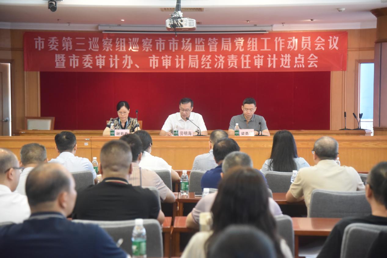 會(huì)上巡察組組長(zhǎng)梁勇贊作動(dòng)員部署講話、明確了巡察工作重點(diǎn),并提出了巡審工作要求。審計(jì)組組長(zhǎng)謝菊香宣讀了審計(jì)通知書、介紹了審計(jì)重點(diǎn)內(nèi)容和巡審工作要求。市市場(chǎng)監(jiān)督管理局黨組書記、局長(zhǎng)勞明海同志作了述職報(bào)告和表態(tài)發(fā)言。
