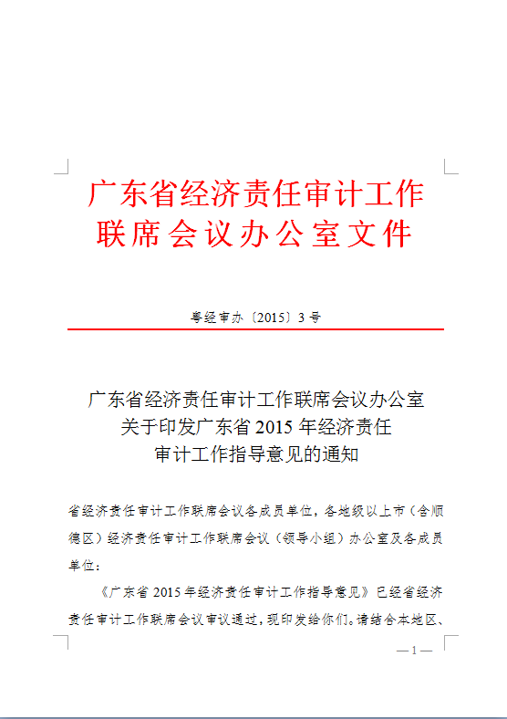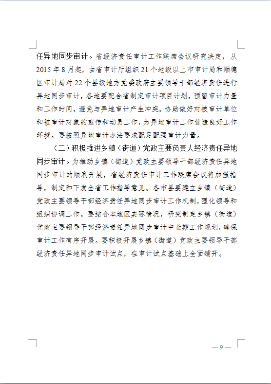 廣東省經濟責任審計工作聯席會議辦公室關于印發(fā)廣東省鄉(xiāng)鎮(zhèn)黨委政府主要領導干部經濟責任異地同步審計工作指導意見的通知