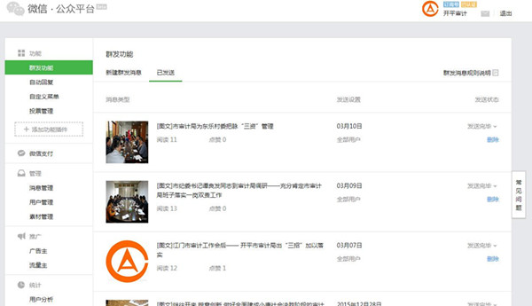 “開(kāi)平審計(jì)”微信公眾號(hào)共發(fā)布微信12條。