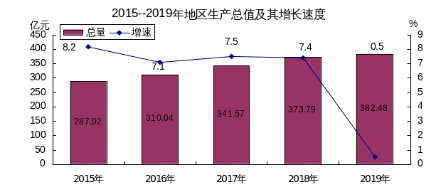 二、農(nóng)業(yè) 全年實(shí)現(xiàn)農(nóng)業(yè)總產(chǎn)值65.04億元,比上年增長5.84%。全年糧食作物播種面積63.27萬畝,比上年增長0.16%。其中:水稻種植面積58.18萬畝,比上年下降0.89%。 全年糧食總產(chǎn)量(折糧)21.13萬噸,與上年持平,其中:稻谷19.85萬噸,比上年下降0.90%。 圖2: 全市更新造林面積5.71萬畝,比上年下降26.79%;木材砍伐19.44萬立方米,比上年下降5.81%。 畜牧業(yè)肉類總產(chǎn)量9.47萬噸,比上年下降16.86%;全年生豬出欄量60.98萬頭,比上年增長5.94%;家禽出欄量3415.15萬只,比上年增長9.38%;禽蛋全年總產(chǎn)量1.1萬噸,比上年下降0.90%;水產(chǎn)品產(chǎn)量5.3萬噸,比上年增長5.16%。 三、工業(yè)和建筑業(yè) 2019年,全市規(guī)模以上工業(yè)企業(yè)309家,規(guī)模以上工業(yè)增加值比上年下降16.20%,工業(yè)總產(chǎn)值比上年下降16.03%。工業(yè)總產(chǎn)值中,按輕重工分:輕工業(yè)下降19.15%,重工業(yè)下降11.62%;按企業(yè)經(jīng)濟(jì)類型分:外商及港澳臺(tái)商投資企業(yè)下降5.16%,股份制企業(yè)下降27.90%,其他經(jīng)濟(jì)類型下降5.80%。 圖3: 全年規(guī)模以上工業(yè)企業(yè)銷售產(chǎn)值比上年下降17.63%,產(chǎn)品銷售率92.72%,主營業(yè)務(wù)收入比上年下降19.38%,利潤總額比上年下降7.57%。 全年具有資質(zhì)等級(jí)的總承包和專業(yè)承包建筑企業(yè)完成總產(chǎn)值191.42億元,比上年增長0.01%。主營業(yè)務(wù)收入164.13億元,比上年下降7.74%。實(shí)現(xiàn)利潤總額4.95億元,比上年增長17.86%。 四、固定資產(chǎn)投資 全年固定資產(chǎn)投資比上年下降7.4%。其中:房地產(chǎn)投資比上年增長80.30%。固定資產(chǎn)投資中,第一產(chǎn)業(yè)投資比上年增長18.54%;第二產(chǎn)業(yè)投資比上年下降27.18%;第三產(chǎn)業(yè)投資比上年增長8.46%。全年民資投資比上年下降5.77%。 全年商品房施工面積494.97萬平方米,比上年增長32.24%;竣工面積32.53萬平方米,比上年增長15.51%;商品房銷售面積87.91萬平方米,比上年增長9.64%;商品房銷售額61.8億元,比上年增長10.82%。 五、交通運(yùn)輸和郵電業(yè) 全年社會(huì)客運(yùn)量3158.8萬人,比上年下降6.67%;客運(yùn)周轉(zhuǎn)量64767.3萬人公里,比上年下降16.24%;港口貨物吞吐量458.17萬噸,比上年下降64.12%。 年末市內(nèi)公路通車?yán)锍?/span>1609.3公里。汽車保有量12.50萬輛,比上年增長7.52%。摩托車保有量16.39萬輛,比上年下降34.27%。公共汽車擁有量259輛。 年末固定電話用戶10.15萬戶,移動(dòng)電話用戶79.74萬戶。 六、國內(nèi)貿(mào)易 全年社會(huì)消費(fèi)品零售總額226.85億元,比上年增長7.00%。按行業(yè)分,批發(fā)和零售業(yè)實(shí)現(xiàn)零售額202.40億元,比上年增長7.00%;住宿和餐飲業(yè)實(shí)現(xiàn)零售額24.45億元,比上年增長6.97%。其中:限額以上貿(mào)易企業(yè)實(shí)現(xiàn)零售額43.27億元,比上年下降7.33%。 圖4: 七、對(duì)外經(jīng)濟(jì)貿(mào)易和旅游業(yè) 全年海關(guān)進(jìn)出口總值152.6億元,比上年下降8.6%。外貿(mào)出口總值128.8億元,比上年下降4.7%。進(jìn)口總值23.7億元,比上年下降25.4%。實(shí)現(xiàn)對(duì)外貿(mào)易順差105.1億元。 全年新批設(shè)立外商直接投資企業(yè)28家,同比增加7家;外商投資增資企業(yè)9家次,比去年減少1家次。合同外資金額0.65億美元,比上年增長226.95%。實(shí)際吸收外商金額0.51億美元,比上年增長7.56%。外向型企業(yè)325家,其中:三資企業(yè)311家,來料加工企業(yè)14家。 全年旅游業(yè)共接待國內(nèi)外游客865.56萬人次,比上年增長12.88%,其中:國內(nèi)旅游者737.53萬人次,比上年增長11.96%;國際旅游者128.03萬人次,比上年增長18.46%;實(shí)現(xiàn)旅游總收入111.45億元,比上年增長21.11%。全市擁有星級(jí)酒店2家,其中:五星級(jí)酒店1家,三星級(jí)1家。旅游飯店出租率65.65%。 八、財(cái)政金融 全年地方公共財(cái)政預(yù)算收入27.95億元,比上年增長7.17%;地方公共財(cái)政預(yù)算支出51.16億元,比上年增長29.86%。 年末金融機(jī)構(gòu)存款余額661.83億元,比上年增長9.01%。其中:城鄉(xiāng)居民儲(chǔ)蓄存款余額470.98億元,比上年增長9.13%。各項(xiàng)貸款余額402.58億元,比上年增長16.37%。僑匯收入0.26億美元,比上年下降27.22%。 九、科學(xué)技術(shù)和教育 全年專利申請(qǐng)量2460件,專利授權(quán)量1713件。國家級(jí)高新技術(shù)企業(yè)132家。全市工程技術(shù)研究中心省級(jí)有49家、地市級(jí)有184家。全市擁有各類專業(yè)技術(shù)人員2.85萬人。 年末全市有中小學(xué)91所,其中完(高、職)中10所,初中19所,小學(xué)58所,九年一貫制學(xué)校4所,全市在校生共124043人,其中小學(xué)生55337人,初中生23992人,高中階段在校生19516人。特殊學(xué)校1所,在校生135人。開放大學(xué)1所,在校本科生285人,大專學(xué)生848人。幼兒園100所,在園兒童25063人。小學(xué)適齡兒童入學(xué)率100%,小學(xué)畢業(yè)生入學(xué)率100%,非正常流動(dòng)率為0%;15周歲人口初等教育完成率100%,與上年持平;17周歲人口中等教育完成率99.78%,比上年提高0.02個(gè)百分點(diǎn)。初中入學(xué)率100%,與上年持平;非正常流動(dòng)率0.51%,比上年提高0.03個(gè)百分點(diǎn)。三類殘疾兒童少年入學(xué)率100%,與上年持平?!捌站拧蔽迓蔬B續(xù)30年達(dá)到國家和省規(guī)定的標(bi