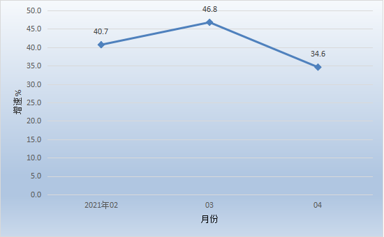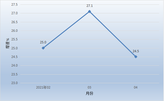 開(kāi)平市1-4月經(jīng)濟(jì)運(yùn)行簡(jiǎn)況 1-4月,全市主要經(jīng)濟(jì)指標(biāo)運(yùn)行簡(jiǎn)況如下: 一、工業(yè)生產(chǎn) 1-4月,開(kāi)平規(guī)模以上工業(yè)企業(yè)累計(jì)完成工業(yè)增加值39.60億元,同比增長(zhǎng)34.6%。 分經(jīng)濟(jì)類型看,股份制企業(yè)增長(zhǎng)38.0%;外商及港澳臺(tái)商投資企業(yè)增長(zhǎng)33.3%;私營(yíng)企業(yè)增長(zhǎng)38.1%。分門類看,采礦業(yè)增加值下降0.7%,制造業(yè)增加值增長(zhǎng)35.2%,電力、熱力、燃?xì)饧八a(chǎn)和供應(yīng)業(yè)增加值增長(zhǎng)24.4%。 1-4月全市工業(yè)用電量增長(zhǎng)33.0%。 圖一:2021年2月以來(lái)我市工業(yè)增加值增速情況 二、投資 1-4月,全市完成固定資產(chǎn)投資同比增長(zhǎng)25.4%。分經(jīng)濟(jì)類型看,國(guó)有投資增長(zhǎng)9.5%;民間投資增長(zhǎng)49.6%。分產(chǎn)業(yè)看,第一產(chǎn)業(yè)投資增長(zhǎng)384.1%;第二產(chǎn)業(yè)投資增長(zhǎng)54.6%,其中工業(yè)投資增長(zhǎng)54.6%;第三產(chǎn)業(yè)投資增長(zhǎng)7.4%,其中房地產(chǎn)投資下降16.3%。 三、消費(fèi)市場(chǎng) 1-4月,我市完成社會(huì)消費(fèi)品零售總額53.61億元,同比增長(zhǎng)24.5%。 圖二:2021年2月以來(lái)我市社會(huì)消費(fèi)品零售總額增速情況 四、財(cái)政收入 1-4月,全市實(shí)現(xiàn)地方一般公共預(yù)算收入9.75億元,同比增長(zhǎng)23.3%,其中稅收收入5.70億元,同比增長(zhǎng)17.6%。 五、金融市場(chǎng) 1-4月,全市金融機(jī)構(gòu)人民幣各項(xiàng)存款余額718.87億元,同比增長(zhǎng)6.4%;人民幣各項(xiàng)貸款余額498.76億元,同比增長(zhǎng)15.8%。