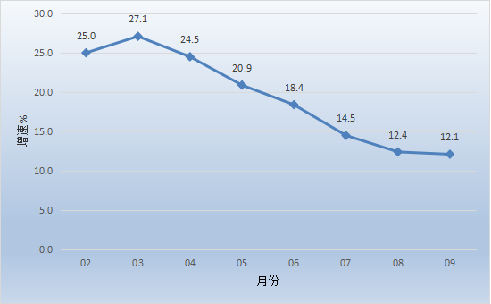 開平市1-9月經濟運行簡況 1-9月,全市主要經濟指標運行簡況如下: 一、工業(yè)生產 1-9月,開平規(guī)模以上工業(yè)企業(yè)累計完成工業(yè)增加值89.32億元,同比增長18.2%。 分經濟類型看,股份制企業(yè)增長34.7%;外商及港澳臺商投資企業(yè)增長7.6%;私營企業(yè)增長25.8%。分門類看,采礦業(yè)增加值增長3.1%,制造業(yè)增加值增長18.3%,電力、熱力、燃氣及水生產和供應業(yè)增加值增長16.7%。 1-9月全市工業(yè)用電量增長21.0%。 圖一:2021年2月以來我市工業(yè)增加值增速情況 二、投資 1-9月,全市完成固定資產投資同比增長17.9%。分經濟類型看,國有投資增長40.8%;民間投資增長38.4%。分產業(yè)看,第一產業(yè)投資增長146.1%;第二產業(yè)投資增長46.5%,其中工業(yè)投資增長46.5%;第三產業(yè)投資增長2.9%,其中房地產投資下降21.7%。 三、消費市場 1-9月,我市完成社會消費品零售總額133.83億元,同比增長12.1%。 圖二:2021年2月以來我市社會消費品零售總額增速情況 四、財政收入 1-9月,全市實現(xiàn)地方一般公共預算收入24.34億元,同比增長14.7%,其中稅收收入13.07億元,同比增長17.2%。 五、金融市場 1-9月,全市金融機構本外幣各項存款余額755.99億元,同比增長5.2%;本外幣各項貸款余額523.10億元,同比增長11.9%。全市金融機構人民幣各項存款余額738.32億元,同比增長5.4%;人民幣各項貸款余額522.18億元,同比增長11.8%。