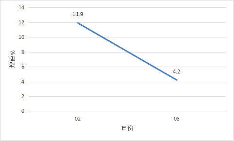 2022年2月以來我市規(guī)模以上工業(yè)增加值情況 三、投資 一季度,全市完成固定資產(chǎn)投資同比增長25.6%。從分經(jīng)濟(jì)類型看,國有投資增長126.6%;民間投資增長25.7%。分產(chǎn)業(yè)看,第一產(chǎn)業(yè)投資增長52.0%;第二產(chǎn)業(yè)投資增長13.9%,其中工業(yè)投資增長13.9%;第三產(chǎn)業(yè)投資增長34.6%,其中房地產(chǎn)投資增長6.3%。 四、消費(fèi)市場 一季度,我市完成社會消費(fèi)品零售總額42.49億元,同比增長3.5%。 圖二