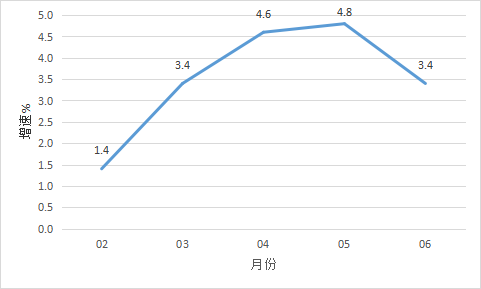 2024年上半年開平市經(jīng)濟運行簡況 上半年,全市主要經(jīng)濟指標運行簡況如下: 一、地區(qū)生產總值 根據(jù)江門市地區(qū)生產總值統(tǒng)一核算結果,上半年,開平市實現(xiàn)地區(qū)生產總值229.58億元,同比增長3.1%。其中,第一產業(yè)增加值25.76億元,同比增長5.0%;第二產業(yè)增加值107.95億元,增長5.2%;第三產業(yè)增加值95.87億元,增長0.5%。 二、農林牧漁業(yè) 上半年,全市實現(xiàn)農林牧漁業(yè)總產值50.85億元,同比增長5.2%。其中,農業(yè)產值14.47億元,同比增長5.8%;林業(yè)產值1.61億元,增長4.9%;牧業(yè)產值25.83億元,增長4.5%;漁業(yè)產值4.31億元,增長3.4%;農林牧漁專業(yè)及輔助性活動產值4.63億元,增長10.9%。 三、工業(yè)生產 上半年,開平規(guī)模以上工業(yè)企業(yè)累計完成工業(yè)增加值63.23億元,同比增長3.4%。 分經(jīng)濟類型看,股份制企業(yè)增長10.2%;外商及港澳臺商投資企業(yè)下降2.7%;私營企業(yè)增長5.6%。分門類看,采礦業(yè)增加值下降21.7%,制造業(yè)增加值增長2.1%,電力、熱力、燃氣及水生產和供應業(yè)增加值增長105.4%。 上半年全市工業(yè)用電量增長8.2%。 圖一 2024年2月以來開平市規(guī)模以上工業(yè)增加值增速 四、投資 上半年,全市完成固定資產投資同比增長6.1%。分經(jīng)濟類型看,國有投資下降15.2%;民間投資下降1.6%。分產業(yè)看,第一產業(yè)投資下降49.1%;第二產業(yè)投資增長6.5%,其中工業(yè)投資增長6.5%;第三產業(yè)投資增長6.8%,其中房地產投資下降15.3%。 五、消費市場 上半年,我市完成社會消費品零售總額87.86億元,同比增長2.0%。 圖二 2024年2月以來開平市社會消費品零售總額增速 六、財政收入 上半年,全市實現(xiàn)地方一般公共預算收入13.49億元,同比增長7.9%,其中稅收收入7.91億元,同比下降8.4%。 七、金融市場 6月末,全市金融機構本外幣各項存款余額960.38億元,同比增長5.2%;本外幣各項貸款余額705.94億元,同比增長9.0%。 八、外貿進出口 上半年,全市外貿進出口總額78.3億元,同比增長5.8%。其中,進口6.8億元,同比增長11.3%;出口71.5億元,同比增長5.3%。 2024.7.31