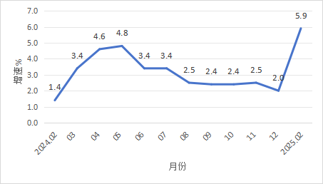 1-2月,全市主要經(jīng)濟指標(biāo)運行簡況如下: 一、工業(yè)生產(chǎn) 1-2月,開平規(guī)模以上工業(yè)企業(yè)累計完成工業(yè)增加值17.17億元,同比增長5.9%。 分經(jīng)濟類型看,股份制企業(yè)增長4.5%;外商及港澳臺商投資企業(yè)增長8.8%;私營企業(yè)下降0.2%。分門類看,采礦業(yè)增加值下降2.9%,制造業(yè)增加值增長5.7%,電力、熱力、燃?xì)饧八a(chǎn)和供應(yīng)業(yè)增加值增長12.4%。 1-2月全市工業(yè)用電量增長4.2%。 圖一 2024年2月以來開平市規(guī)模以上工業(yè)增加值增速 二、投資 1-2月,全市完成固定資產(chǎn)投資同比下降27.5%。分經(jīng)濟類型看,國有投資下降35.2%;民間投資下降18.3%。 三、消費市場 1-2月,我市完成社會消費品零售總額28.55億元,同比下降0.7%。 圖二 2024年2月以來開平市社會消費品零售總額增速 四、財政收入 1-2月,全市實現(xiàn)地方一般公共預(yù)算收入5.38億元,同比增長1.1%,其中稅收收入3.00億元,同比下降7.1%。 五、金融市場 2月末,全市金融機構(gòu)本外幣各項存款余額1042.86億元,同比增長9.6%;本外幣各項貸款余額728.81億元,同比增長4.8%。 六、外貿(mào)進(jìn)出口 1-2月,全市外貿(mào)進(jìn)出口總額25.2億元,同比增長2.1%。其中,進(jìn)口1.8億元,同比下降10.6%;出口23.4億元,同比增長3.3%。