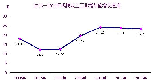 2012年,全市規(guī)模以上工業(yè)企業(yè)233家,規(guī)模以上工業(yè)增加值比上年增長(zhǎng)23.20%,工業(yè)總產(chǎn)值比上年增長(zhǎng)21.82 %。工業(yè)總產(chǎn)值,按輕重工分:輕工業(yè)增長(zhǎng)22.32%,重工業(yè)增長(zhǎng)16.12%;按企業(yè)經(jīng)濟(jì)類型分:外商及港澳臺(tái)商投資企業(yè)增長(zhǎng)23.91 %;國(guó)有企業(yè)增長(zhǎng)7.1 %;集體企業(yè)增長(zhǎng)14.83%;股份制企業(yè)增長(zhǎng)20.22 %;其他經(jīng)濟(jì)類型增長(zhǎng)10.46%。