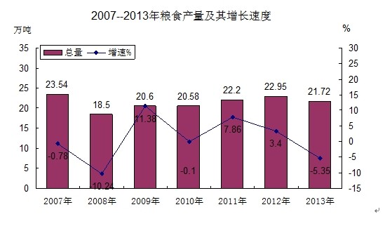 注:1、本公報中2013年數(shù)據(jù)為初步統(tǒng)計數(shù),統(tǒng)計圖中2007--2012年數(shù)據(jù)為年報數(shù)。