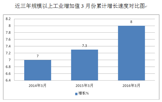 我市以“創(chuàng)新引領(lǐng)、主動作為、協(xié)同奮進”為年度工作主線,努力打造“先進產(chǎn)業(yè)基地、文化旅游名市、文明宜居新城、和諧幸福僑鄉(xiāng)”,力爭在“十三五”規(guī)劃的開局之年實現(xiàn)穩(wěn)中向好發(fā)展。2016年第一季度,我市各項經(jīng)濟指標(biāo)運行態(tài)勢良好,為年后經(jīng)濟發(fā)展打下堅實基礎(chǔ)。 一、第一季度主要經(jīng)濟指標(biāo)運行良好 (一)規(guī)模以上工業(yè)保持上升態(tài)勢 我市規(guī)模以上工業(yè)延續(xù)了去年下半年以來的上升態(tài)勢,1—3月份,累計完成工業(yè)增加值21.53億元,同比增長8.0%,增長幅度比上年同期高出0.7個百分點,也是近三年來同期的最高值。詳見下圖: 從輕重工業(yè)來看:重工業(yè)發(fā)展較好。1—3月份,重工業(yè)完成工業(yè)增加值10.65億元,同比增長10.1%,比全市規(guī)上工業(yè)增速快2.1個百分點。 從注冊類型看:股份制企業(yè)發(fā)展較快。1—3月份,股份制企業(yè)完成工業(yè)增加值7.33億元,同比增長12.1%,比全市規(guī)上工業(yè)增速快4.1個百分點。 (二)投資發(fā)展保持穩(wěn)定 我市以“交通一體、產(chǎn)城互動”為方向,積極實施“交通大會戰(zhàn)”,成效初現(xiàn)。 1—3月份,我市固定資產(chǎn)投資在高恩高速(江門段)、開平環(huán)城公路(東環(huán)段)及省道S274開平市區(qū)改線工程等超億元交通項目開工建設(shè)帶動下,累計完成固定資產(chǎn)投資總額24.49億元,同比增長24.58%。 交通項目投資增長推動我市第三產(chǎn)業(yè)投資穩(wěn)定發(fā)展。1—3月份,第三產(chǎn)業(yè)的投資額占全社會固定投資總額比重達55.58%,實現(xiàn)增長速度6.67%。 我市消費市場在油價連續(xù)五個調(diào)價窗口停調(diào)、春節(jié)“黃金周” 及 “車改”和淘汰黃標(biāo)車等多重利好政策因素帶動下,消費市場活躍,糧油、食品類和汽車類等商品銷售暢旺。1—3月份,我市累計完成社零消費品零售總額40.89億元,同比增長9.55%,增長速度比上年同期快5.07個百分點,是近兩年同期增長速度的最高值。其中:城鎮(zhèn)消費累計實現(xiàn)零售總額29.42億元,同比增長11.02%,比全市增速快1.47個百分點。 (四)財政收入增長速度明顯加快 我市經(jīng)濟主體的活力增強,財政收入增長速度明顯加快。1—3月份,在稅收收入的增長帶動下,我市完成一般公共預(yù)算收入5.14億元,同比增長9.76%,比上年同期增速快3.67個百分點。其中:稅收收入增長較快,增長達13.62%,對我市財政收入增長的貢獻率達92.52%,拉動一般公共預(yù)算收入增長9.03個百分點,標(biāo)志著我市各經(jīng)濟主體的經(jīng)營效益上升,運行質(zhì)量提高。 二、經(jīng)濟運行中的亮點 (一)裝備制造業(yè)發(fā)展形勢較好 我市在推動產(chǎn)業(yè)轉(zhuǎn)型升級過程中,著力發(fā)展新興戰(zhàn)略性制造業(yè)。通用設(shè)備制造業(yè)、電氣機械和器材制造業(yè)等裝備制造業(yè)發(fā)展加快。1—3月份,我市裝備制造業(yè)完成規(guī)模以上工業(yè)增加值7.33億元,同比增長17.9%,比規(guī)模以上工業(yè)增加值增速快9.9個百分點。 裝備制造業(yè)的投資不斷加大,1—3月份,裝備制造業(yè)完成投資5.04億元,同比增長136.78%,比全市固定資產(chǎn)投資總額增速快112.2個百分點。 我市經(jīng)濟新的增長點正逐步形成,裝備制造業(yè)已成為我市經(jīng)濟的第二大產(chǎn)業(yè)。 (二)小微型工業(yè)企業(yè)發(fā)展加快 我市小微企業(yè)在江門市成為全國小微企業(yè)創(chuàng)業(yè)創(chuàng)新基地示范城市的帶動下發(fā)展加快。1—3月份,規(guī)模以上工業(yè)的小微型企業(yè)完成工業(yè)增加值11.20億元,占全市規(guī)模以上工業(yè)比重達52.02%,同比增長14.7%,比規(guī)模以上工業(yè)增速快6.7個百分點。小微型企業(yè)占據(jù)我市工業(yè)經(jīng)濟的半壁江山,其在政策的扶持下發(fā)展活力得到進一步加強,是我市經(jīng)濟的重要組成部分。 (三)房地產(chǎn)銷售保持高速發(fā)展 我市房地產(chǎn)市場供給端在住房貸款比例調(diào)整等有關(guān)政策的刺激下,延續(xù)了2015年以來的高速流轉(zhuǎn)態(tài)勢,保持著兩位數(shù)的速度運轉(zhuǎn)。1—3月份,我市商品房銷售面積增長達40.18%,商品房銷售額增長達52.44%。房地產(chǎn)市場保持著銷售熱度,交投活躍,為五金、電料類、家具類等相關(guān)延伸行業(yè)創(chuàng)造了無限商機,帶動我市第三產(chǎn)業(yè)發(fā)展壯大。