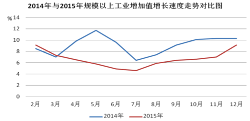 2015年是“十二五”規(guī)劃的收官之年,在復雜嚴峻的國內(nèi)外經(jīng)濟形勢下,我市勇于面對困難,砥礪前行,各項主要經(jīng)濟指標實現(xiàn)了穩(wěn)中向好的態(tài)勢運行,為明年經(jīng)濟發(fā)展打下了良好的基礎。 經(jīng)濟各供給端穩(wěn)中向好運行 第四季度,我市累計實現(xiàn)地區(qū)生產(chǎn)總值287.92億元,同比增長8.2%,增長速度比第三季度快0.8個百分點。 (一)實物生產(chǎn)供給呈穩(wěn)中有升勢頭 我市生產(chǎn)市場端日漸適應經(jīng)濟新常態(tài),生產(chǎn)發(fā)展曲線比2014年平滑,呈現(xiàn)穩(wěn)中有升的發(fā)展勢頭。12月份止,我市規(guī)模以上工業(yè)累計實現(xiàn)工業(yè)增加值109.26億元,同比增長9.1%,增長幅度比11月份上升2.1個百分點。其中:裝備制造業(yè)完成工業(yè)增加值39.33億元,同比增長20.80%,比規(guī)模以上工業(yè)增加值增速快11.7個百分點,成為我市制造業(yè)的增長亮點。2014年至2015年12月份規(guī)模以上工業(yè)增加值增長速度運行情況, 見下圖: 圖1: 從圖中所見,2015年,規(guī)模以上工業(yè)增加值的增長速度總體呈大“V”型的態(tài)勢發(fā)展,由7月份起呈緩慢上升的良好態(tài)勢運行。雖然在經(jīng)濟新常態(tài)下規(guī)模以上工業(yè)增加值增長速度比2014年進一步下行,但運行走勢相對2014年平緩,波動幅度為4.5%,波幅比2014年下降0.8個百分點。 (二)資金供給平穩(wěn) 1.金融市場貨幣資金供給平穩(wěn)。我市金融機構各項存、貸款的發(fā)展速度平穩(wěn),在年內(nèi)的波動較小。12月份止,各項貸款余額達225.12億元,比去年同期增長15.93%;各項存款余額479.85億元,同比增長7.51%,其中:住戶存款348.69億元,占存款總量72.67%,是我市貨幣資金供給主要來源。 2.政府資金供給穩(wěn)定。政府資金對社會公共事業(yè)建設的供給力度穩(wěn)定,近年我市財政資金對公共支出供給均保持著兩位數(shù)的增長速度。12月份止,我市一般公共預算支出同比增長21.09%,對公共安全、教育、社會保障和就業(yè)等方面的支出均保持著較快增長的態(tài)勢。 (三)流通市場供給向好 我市流通市場的供給運行向好,消費品零售市場活躍,發(fā)展速度由年初開始緩速爬坡至6月份的兩位數(shù)增長后保持著較為平穩(wěn)的態(tài)勢運行。12月份止,我市累計完成社會消費品零售總額157.23億元,同比增長11.0%。 (四)房地產(chǎn)市場供給流轉(zhuǎn)加快 我市房地產(chǎn)市場在國家一系列政策組合拳的刺激推動下,逐漸擺脫2014年以來的低迷走勢,商品房施工面積由年初開始均保持兩位數(shù)的增長速度,而商品房的銷售面積增長速度則由6月份開始比商品房竣工面積增長速度快。1--12月,我市商品房施工面積同比增長24.30%、商品房竣工面積同比下降37.83%、商品房的銷售面積同比增長56.61%,商品房的銷售面積增長速度比竣工面積的增長速度快94.44個百分點??梢钥闯?,我市房地產(chǎn)市場供給流轉(zhuǎn)較快,去庫存化明顯,有利于房地產(chǎn)市場的持續(xù)健康發(fā)展。