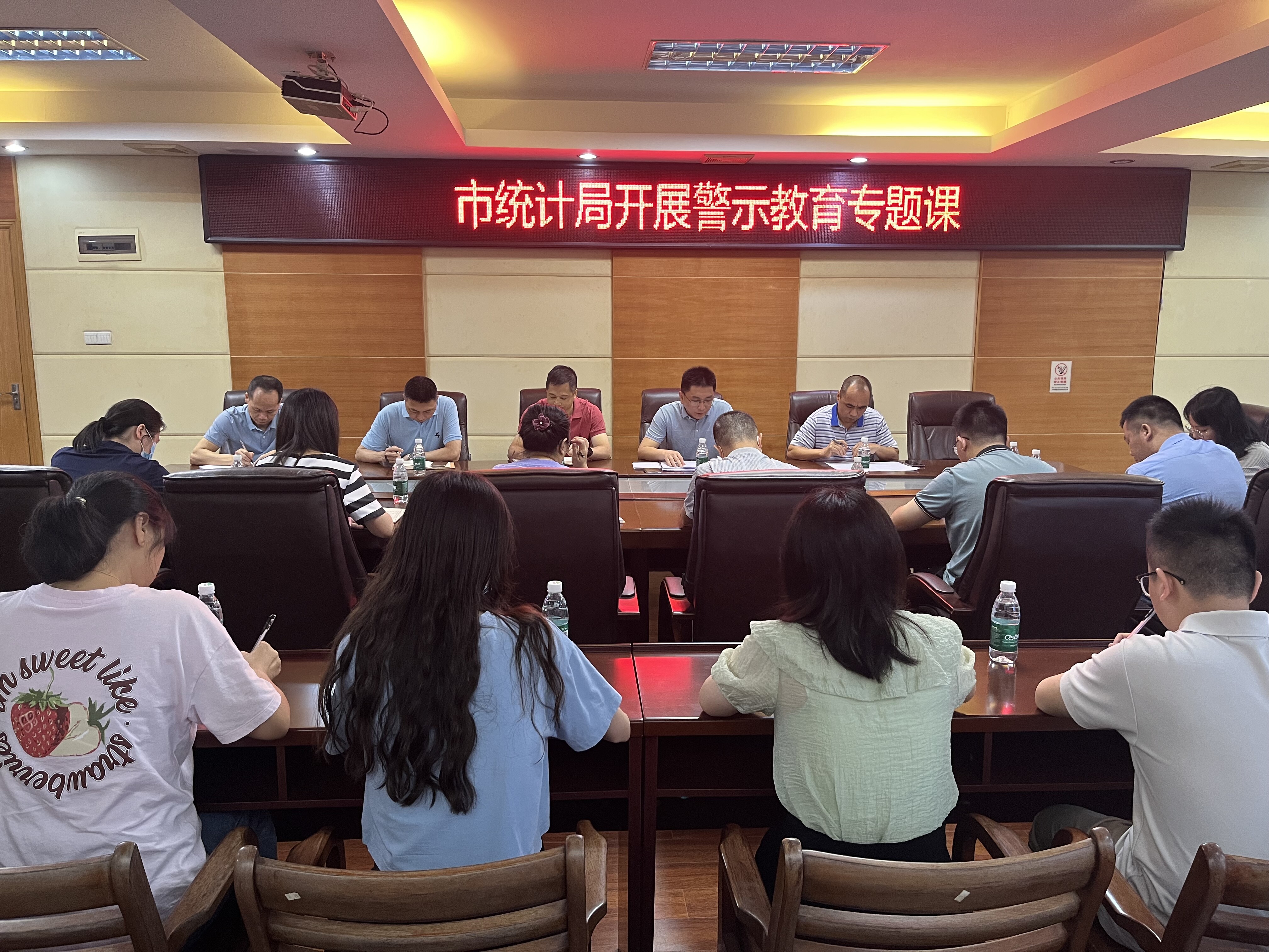 市統(tǒng)計(jì)局開展警示教育專題課 為深入學(xué)習(xí)貫徹習(xí)近平新時(shí)代中國(guó)特色社會(huì)主義思想和習(xí)近平總書記視察廣東重要講話重要指示精神,扎實(shí)推進(jìn)全面從嚴(yán)治黨向縱深發(fā)展,9月8日上午,市統(tǒng)計(jì)局結(jié)合紀(jì)律教育學(xué)習(xí)月活動(dòng)安排,黨組書記、局長(zhǎng)李健鵬同志為全體干部職工作警示教育專題課。 李健鵬同志結(jié)合統(tǒng)計(jì)系統(tǒng)統(tǒng)計(jì)造假屢禁難絕典型案例作深入剖析,提出全體干部職工要以此次紀(jì)律教育學(xué)習(xí)月為契機(jī)和抓手,從典型案例中汲取經(jīng)驗(yàn)教訓(xùn),舉一反三,嚴(yán)守紀(jì)律,切實(shí)筑牢不敢腐、不能腐、不想腐的思想防線,使警示教育真正取得實(shí)效。一是要防范黨的政治建設(shè)領(lǐng)域的風(fēng)險(xiǎn),嚴(yán)守政治紀(jì)律政治規(guī)矩。二是要防范遵守中央八項(xiàng)規(guī)定精神和各項(xiàng)紀(jì)律方面的防線。三是樹立正確的政績(jī)觀。 專題課后,全體干部職工集中觀看警示教育片。警示教育片收錄了一些違紀(jì)違法典型案例,真實(shí)剖析了部分領(lǐng)導(dǎo)干部在各個(gè)領(lǐng)域的腐敗問(wèn)題,具有深刻的警示教育意義。觀后,全體干部職工紛紛表示要以案為鑒、警鐘長(zhǎng)鳴,堅(jiān)持把紀(jì)律和規(guī)矩挺在前面,嚴(yán)守黨的政治紀(jì)律和政治規(guī)矩,做到知敬畏、存戒懼、守底線,展示統(tǒng)計(jì)局黨員干部的良好形象,以更務(wù)實(shí)的狀態(tài)投入到工作中。
