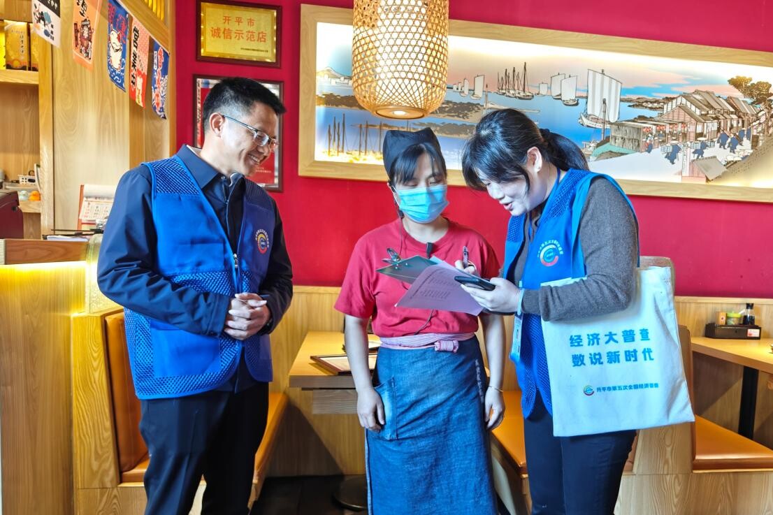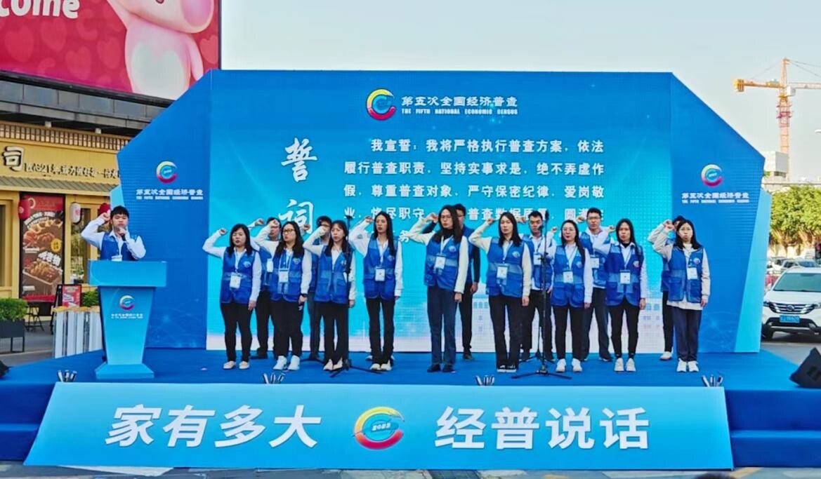 開平市“五經(jīng)普”入戶登記工作正式啟動 1月3日下午,開平市第五次全國經(jīng)濟普查(以下簡稱“五經(jīng)普”)入戶登記啟動儀式活動在市東匯城廣場舉行。江門市統(tǒng)計局副局長麥婉芬,市委常委、副市長、市第五次全國經(jīng)濟普查領導小組常務副組長余文鋒出席活動。 自籌備開展“五經(jīng)普”工作以來,開平市堅持“穩(wěn)、快、準、嚴、活”,完成了普查區(qū)劃分與建筑物信息采集、“兩員”選聘培訓、部門數(shù)據(jù)收集整理、清查底冊編制、“地毯式”清查、查疑補漏、數(shù)據(jù)審核驗收與普查名錄編制等各項工作。目前,全市“五經(jīng)普”準備工作已經(jīng)就緒,從即日起,我市全面展開正式普查登記工作。 余文鋒指出,第五次全國經(jīng)濟普查是黨的二十大勝利召開后首次國民經(jīng)濟“全面體檢”和“集中盤點”,對于全面摸清我市經(jīng)濟社會發(fā)展狀況、加強和改善宏觀調(diào)控、服務推動高質(zhì)量發(fā)展,具有重要而深遠的意義。 活動強調(diào),全市各鎮(zhèn)街、各部門要高度重視普查登記,加強組織領導,牢固樹立“一盤棋”思想,發(fā)揮好領導干部帶頭作用,統(tǒng)籌抓好落實、加強督促檢查,確保普查工作有力有序開展;全市普查“兩員”要認真做好普查登記,堅持依法普查、實事求是,嚴格按照《全國經(jīng)濟普查條例》規(guī)定和普查方案要求開展普查登記,確保登記信息準確完整、原始數(shù)據(jù)真實可信;廣大普查對象要積極支持普查登記,認真履行普查法定義務,如實、按時填報經(jīng)濟普查表,不虛報、瞞報、拒報和遲報經(jīng)濟普查數(shù)據(jù),以實際行動支持配合普查工作。 啟動儀式上,來自市、鎮(zhèn)(街道)的17個普查員代表進行集體宣誓,承諾將嚴格執(zhí)行普查方案,依法履行普查職責,堅持實事求是,確保普查數(shù)據(jù)質(zhì)量。 啟動儀式后,余文鋒帶隊走訪了市東匯城廣場內(nèi)的普查對象,深入普查一線,現(xiàn)場指導登記工作。 活動現(xiàn)場,通過懸掛“五經(jīng)普”宣傳海報,發(fā)放經(jīng)濟普查宣傳資料,開展有獎知識競答和游戲互動等方式,現(xiàn)場向參加活動的市民群眾宣傳講解普查知識,營造良好普查氛圍,提升普查對象及社會各界對經(jīng)濟普查的知曉度和配合度。