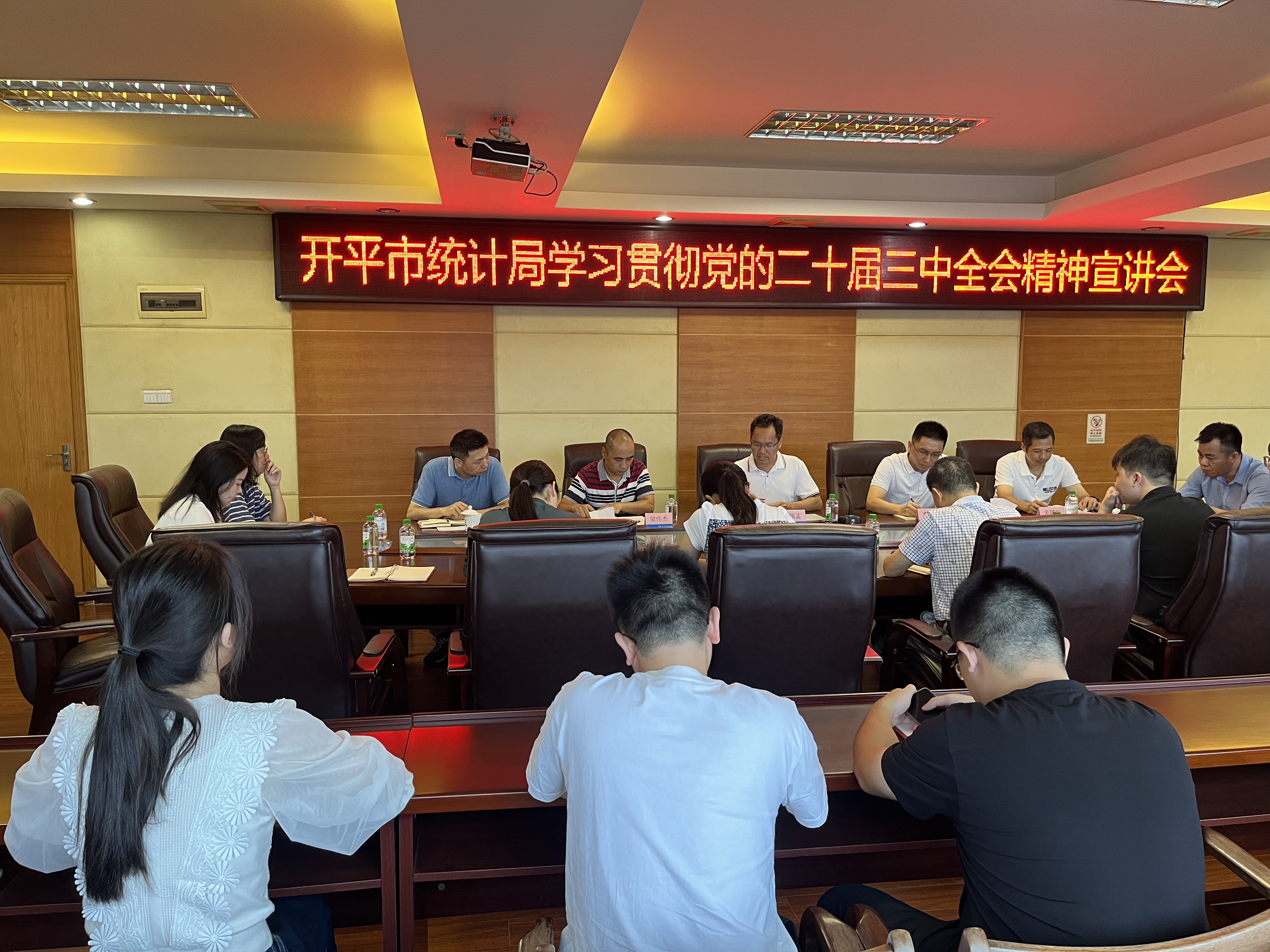 開平市統(tǒng)計局召開學習貫徹黨的二十屆三中全會精神宣講會 為全面深入學習領(lǐng)會黨的二十屆三中全會精神,9月5日上午,市統(tǒng)計局召開學習貫徹黨的二十屆三中全會精神宣講會,邀請市直機關(guān)工委常務副書記劉國孟同志為全局黨員、干部開展面對面宣講。市統(tǒng)計局黨組成員、副局長梁偉杰同志主持會議。 會上,劉國孟同志緊緊圍繞習近平總書記在黨的二十屆三中全會上的重要講話和《中共中央關(guān)于進一步全面深化改革、推進中國式現(xiàn)代化的決定》,結(jié)合我市工作實際和統(tǒng)計職能作用,從“學什么、怎么學、如何做”三個方面進行了系統(tǒng)宣講和深入闡釋。 劉國孟同志強調(diào),黨的二十屆三中全會是在以中國式現(xiàn)代化全面推進強國建設(shè)、民族復興偉業(yè)的關(guān)鍵時期召開的一次十分重要的會議,是新的歷史起點上進一步全面深化改革、推進中國式現(xiàn)代化的總動員、總部署,具有繼往開來的里程碑意義。要把學習貫徹全會精神不斷引向深入,進一步深刻領(lǐng)悟“兩個確立”的決定性意義,增強“四個意識”、堅定“四個自信”、做到“兩個維護”,為推進中國式現(xiàn)代化開平實踐、奮力再造一個現(xiàn)代化新開平凝心聚力、貢獻智慧力量。 對于如何學習好、貫徹好黨的二十屆三中全會精神,做到學用貫通,提高學習效果,推動成果轉(zhuǎn)化,劉國孟同志現(xiàn)場支“三招”,即要做到“三個結(jié)合”:一是要把學習貫徹黨的二十屆三中全會精神與學習貫徹習近平總書記重要講話精神結(jié)合起來,持續(xù)深化學習領(lǐng)會習近平總書記關(guān)于全面深化改革的一系列新思想、新觀點、新論斷;二是把學習貫徹黨的二十屆三中全會精神與單位職能職責結(jié)合起來,認真完成全會確定的統(tǒng)計改革重點任務,確保全會重大部署在統(tǒng)計部門落地見效;三是要把學習貫徹黨的二十屆三中全會精神與解決工作中遇到的問題結(jié)合起來,從學習中明確努力方向、抓住工作重點、找到破解難題的思路和辦法,以有力有效的創(chuàng)新推動統(tǒng)計工作高質(zhì)量發(fā)展。 與會同志紛紛表示,此次宣講會系統(tǒng)全面、內(nèi)容豐富,具有很強的理論性、針對性和實踐性,聽后深受啟發(fā),將以此次宣講會為契機,全面深入學習貫徹黨的二十屆三中全會精神,深入貫徹落實習近平總書記關(guān)于統(tǒng)計工作重要講話和重要指示批示精神,立足崗位,履職擔當、真抓實干,為推動全市經(jīng)濟和社會高質(zhì)量發(fā)展積極貢獻統(tǒng)計力量。