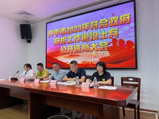8月10日,開平市組織開展2023年符合政府安排工作條件退役士兵公開選崗大會(huì)。市紀(jì)委監(jiān)委、市委編辦、市人社局、市退役軍人事務(wù)局等單位相關(guān)負(fù)責(zé)同志以及符合政府安排工作退役士兵參加會(huì)議。