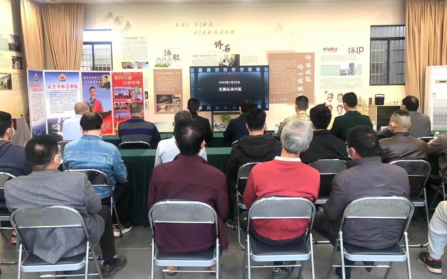 ▲觀看《雙擁運(yùn)動(dòng)興起》宣傳片