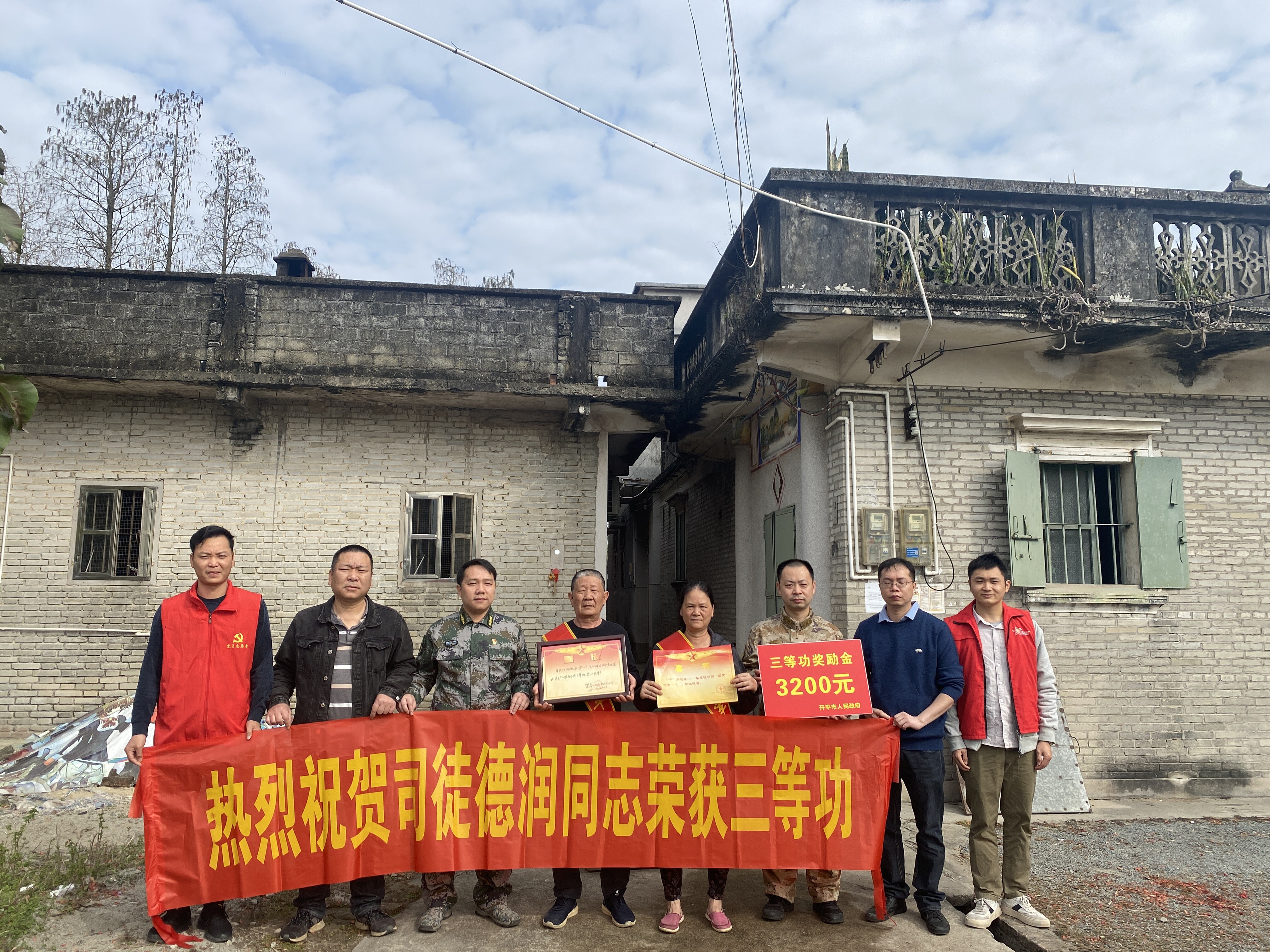 來(lái)到司徒德潤(rùn)同志家中。其父親表示,2016年入伍以來(lái),孩子在部隊(duì)多次獲得四有優(yōu)秀士兵榮譽(yù),他很是欣慰。這次榮立三等功,更是感到自豪。