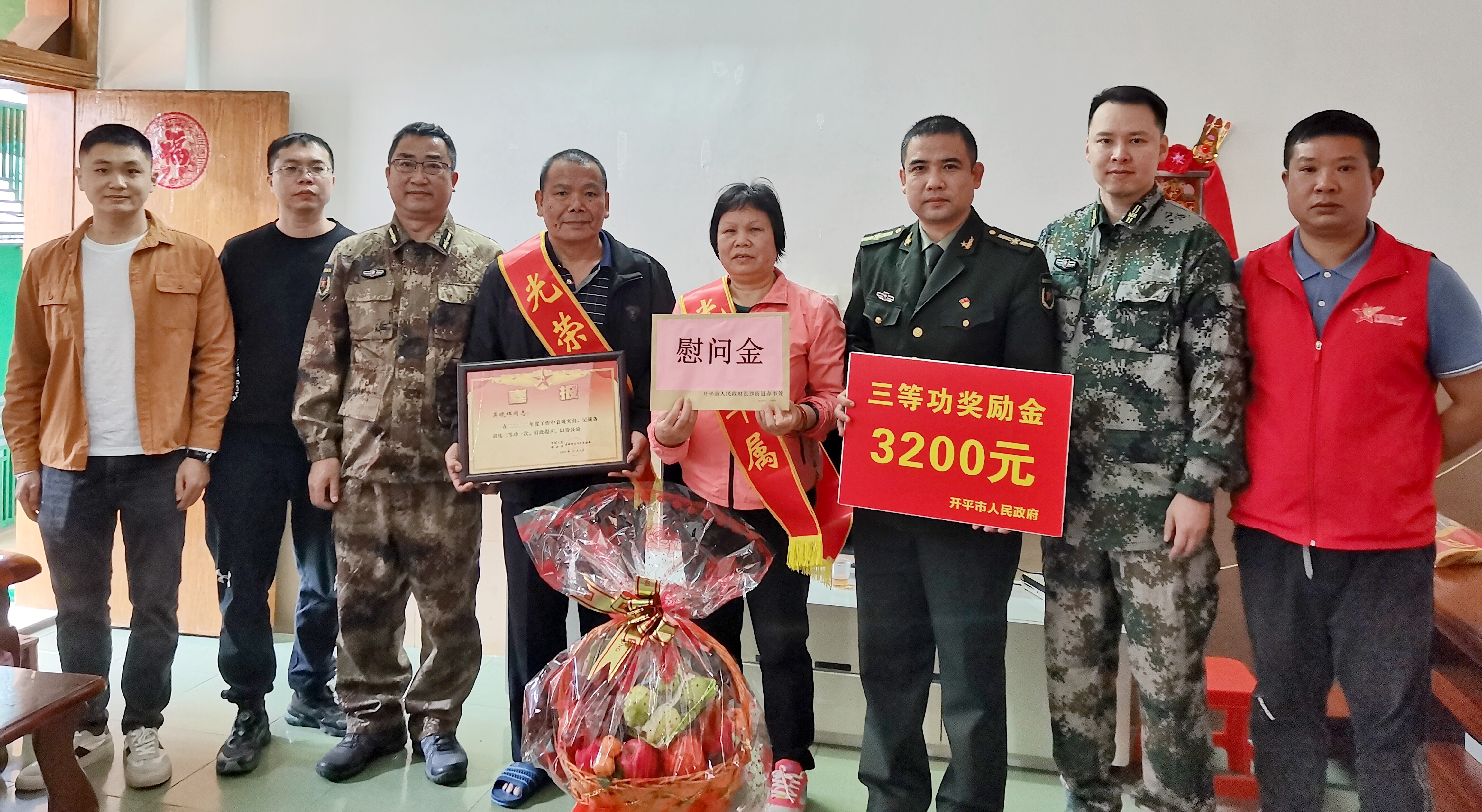 2月28日上午,開平市退役軍人事務(wù)局聯(lián)合市人民武裝部及鄉(xiāng)鎮(zhèn)負責(zé)人員,為開平市2名現(xiàn)役軍人家庭送去喜報和獎勵金,感謝軍人家屬多年來支持子女在部隊為國家所作的貢獻。