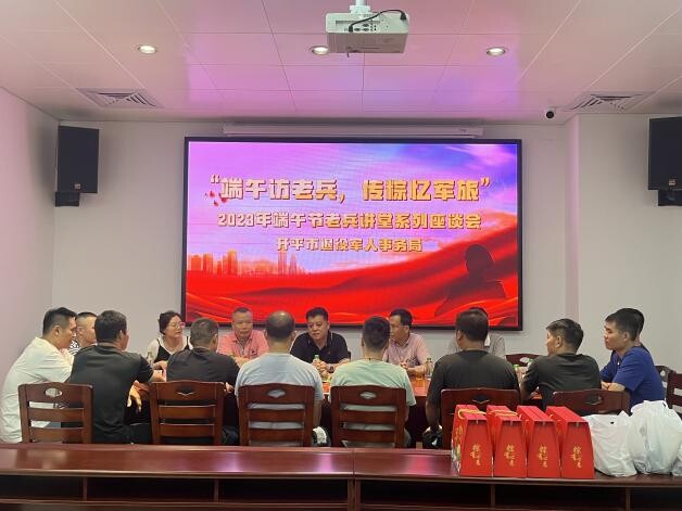 老兵講堂憶軍營。6月19日下午,“端午訪老兵、傳粽憶軍營”系列老兵講堂在開平市退役軍人事務(wù)局會議室開講。講堂邀請開平市自主擇業(yè)軍轉(zhuǎn)干部分享自己的親身經(jīng)歷及軍旅趣事,與2023年政府安排工作退役士兵進(jìn)行面對面交流,回憶分享各自部隊(duì)的端午節(jié)習(xí)俗及節(jié)日故事,共同感受端午節(jié)日文化氛圍。隨后退役士兵們?yōu)樽灾鲹駱I(yè)軍轉(zhuǎn)干部送上誠摯的節(jié)日問候及親手制作的粽子,讓“暖心粽”成為老兵共度端午佳節(jié)最好的“連心橋”。