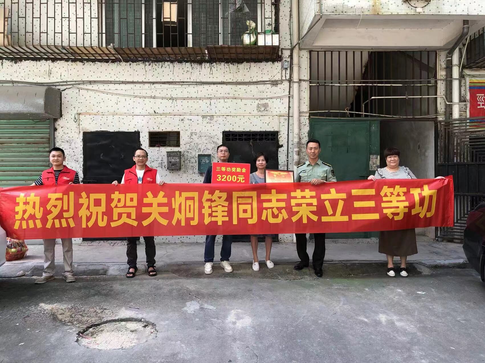 為進(jìn)一步弘揚擁軍優(yōu)屬的光榮傳統(tǒng),營造“一人參軍,全家光榮”的氛圍,“八一”建軍節(jié)前夕,市退役軍人事務(wù)局聯(lián)合三埠街道退役軍人服務(wù)站到榮立三等功的三埠籍現(xiàn)役軍人關(guān)炯鋒家中給其家人送上喜報和慰問金。
