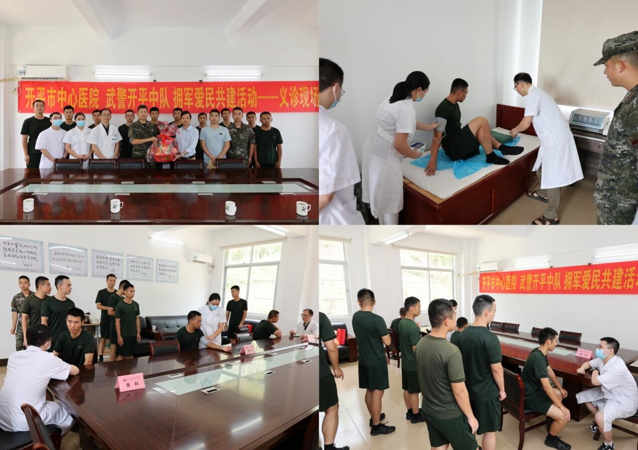 開平市中心醫(yī)院走進(jìn)武警開平中隊(duì)開展擁軍愛民共建義診活動(dòng),來自骨科、內(nèi)科等科室的醫(yī)療專家現(xiàn)場(chǎng)坐診,為部隊(duì)官兵進(jìn)行全面身體健康檢查及健康指導(dǎo)。