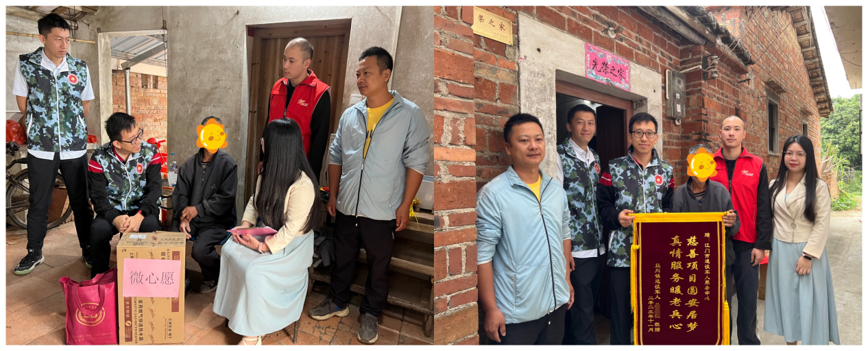 11月29日上午,江門(mén)市、開(kāi)平市、馬岡鎮(zhèn)、樂(lè)善村四級(jí)退役軍人服務(wù)中心(站)聯(lián)袂到忠伯家中回訪(fǎng)并送上熱水器等微心愿物品?!案屑h和國(guó)家這么關(guān)心我們這些老兵,幸好有你們這群‘娘家人’一直在幫忙。多謝大家送我一個(gè)溫暖小家?!敝也Z(yǔ)帶哽咽地說(shuō)到,并送上錦旗致謝。