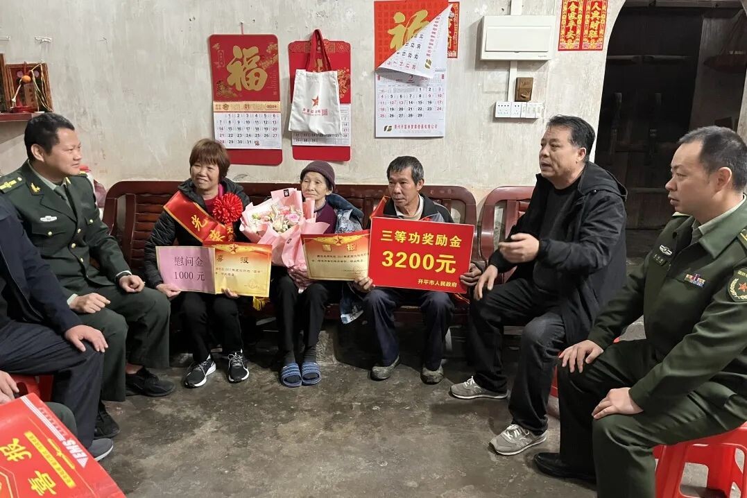 為弘揚擁軍優(yōu)屬、擁政愛民的光榮傳統(tǒng),激發(fā)部隊士兵安心服役、建功軍營、獻身國防的政治熱情,近日,開平市退役軍人事務(wù)局、市人民武裝部和塘口鎮(zhèn)一行組成慰問團,分別到潭溪鳳社村和升平龍興村,為榮立三等功的現(xiàn)役軍人謝曉文和周逸成的家屬送去喜報。