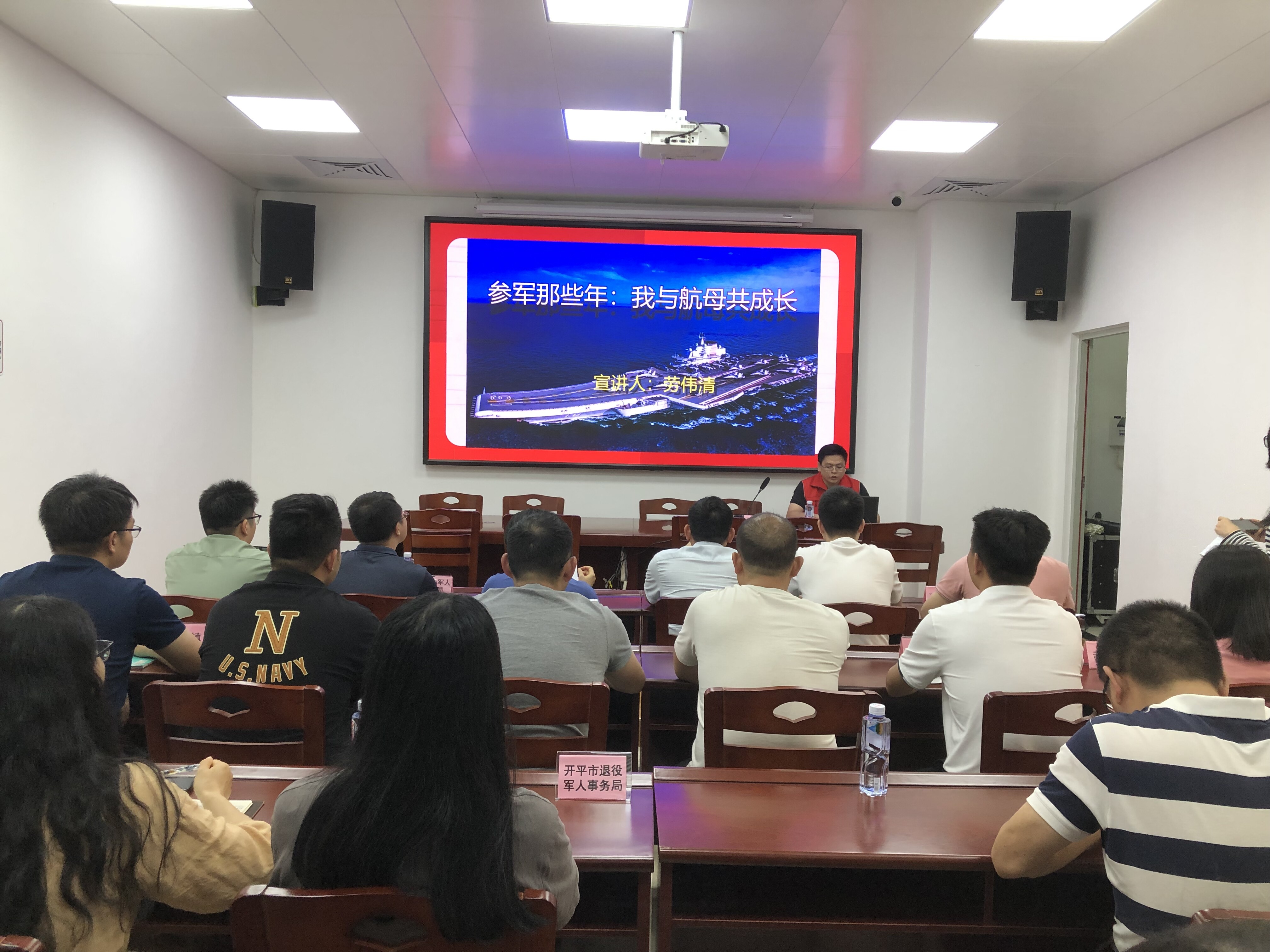近日,開平市退役軍人事務(wù)局邀請?jiān)塾谶|寧艦的退役老兵勞偉清同志分享他和遼寧艦的故事。