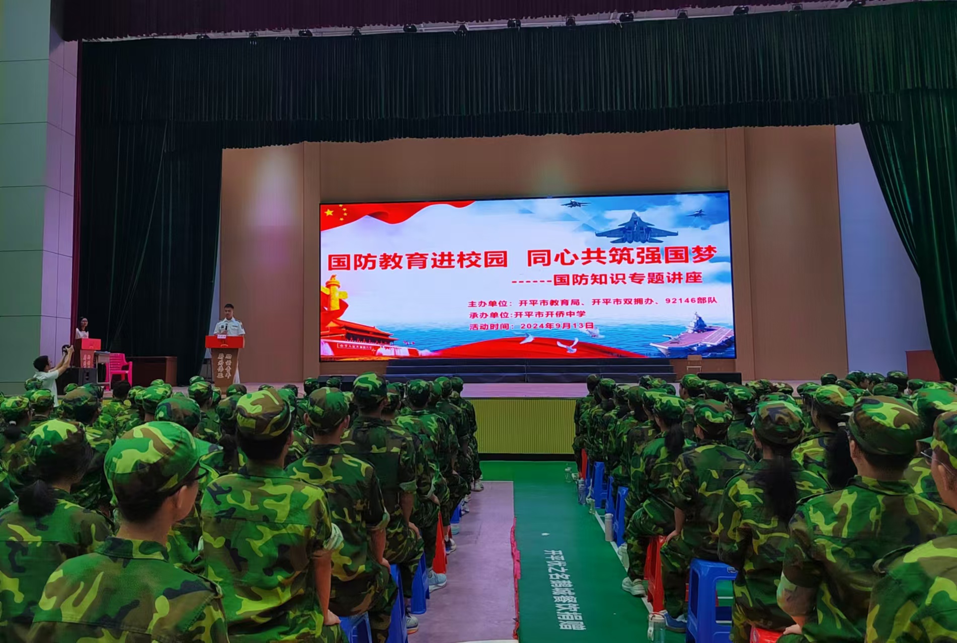 開平市新生軍訓(xùn)于9月9日拉開帷幕。為加強(qiáng)國(guó)防教育,激發(fā)學(xué)生愛國(guó)熱情,9月13日,由開平市雙擁辦、開平市教育局、駐開某部隊(duì)聯(lián)合主辦的“國(guó)防教育進(jìn)校園”國(guó)防知識(shí)講座在開僑中學(xué)舉行。部隊(duì)代表以《中國(guó)夢(mèng) 強(qiáng)軍夢(mèng)--強(qiáng)國(guó)必須強(qiáng)軍》為題開展國(guó)防教育講座,吸引了開僑中學(xué)高一全體軍訓(xùn)新生、部分教職工等近900人參加。