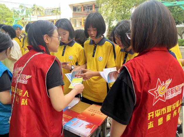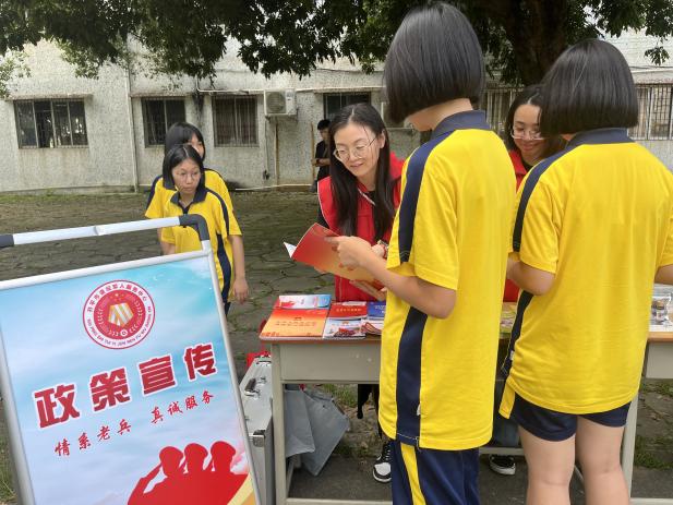 此外,活動(dòng)還邀請(qǐng)了僑都星火志愿服務(wù)隊(duì)一同進(jìn)校園,向?qū)W生們宣傳發(fā)放《中華人民共和國(guó)退役軍人保障法》、《退役軍人優(yōu)待證》、《征兵宣傳手冊(cè)》等資料,促進(jìn)學(xué)生對(duì)國(guó)防事業(yè)及退役軍人更全面的認(rèn)識(shí)。在活動(dòng)現(xiàn)場(chǎng),學(xué)生們認(rèn)真閱讀資料,不時(shí)提出疑問(wèn),而志愿隊(duì)員則一一耐心解答,積極互動(dòng),濃厚的愛國(guó)教育氛圍讓紅色文化、紅色基因的種子植根校園。