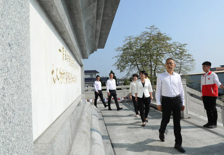 在深情的《獻(xiàn)花曲》中,禮兵們將花籃擺放到紀(jì)念碑基座上,余中華上前整理花籃緞帶。隨后,全體人員依次走上臺(tái)階,緩步繞行瞻仰烈士紀(jì)念碑,表達(dá)崇高敬意。