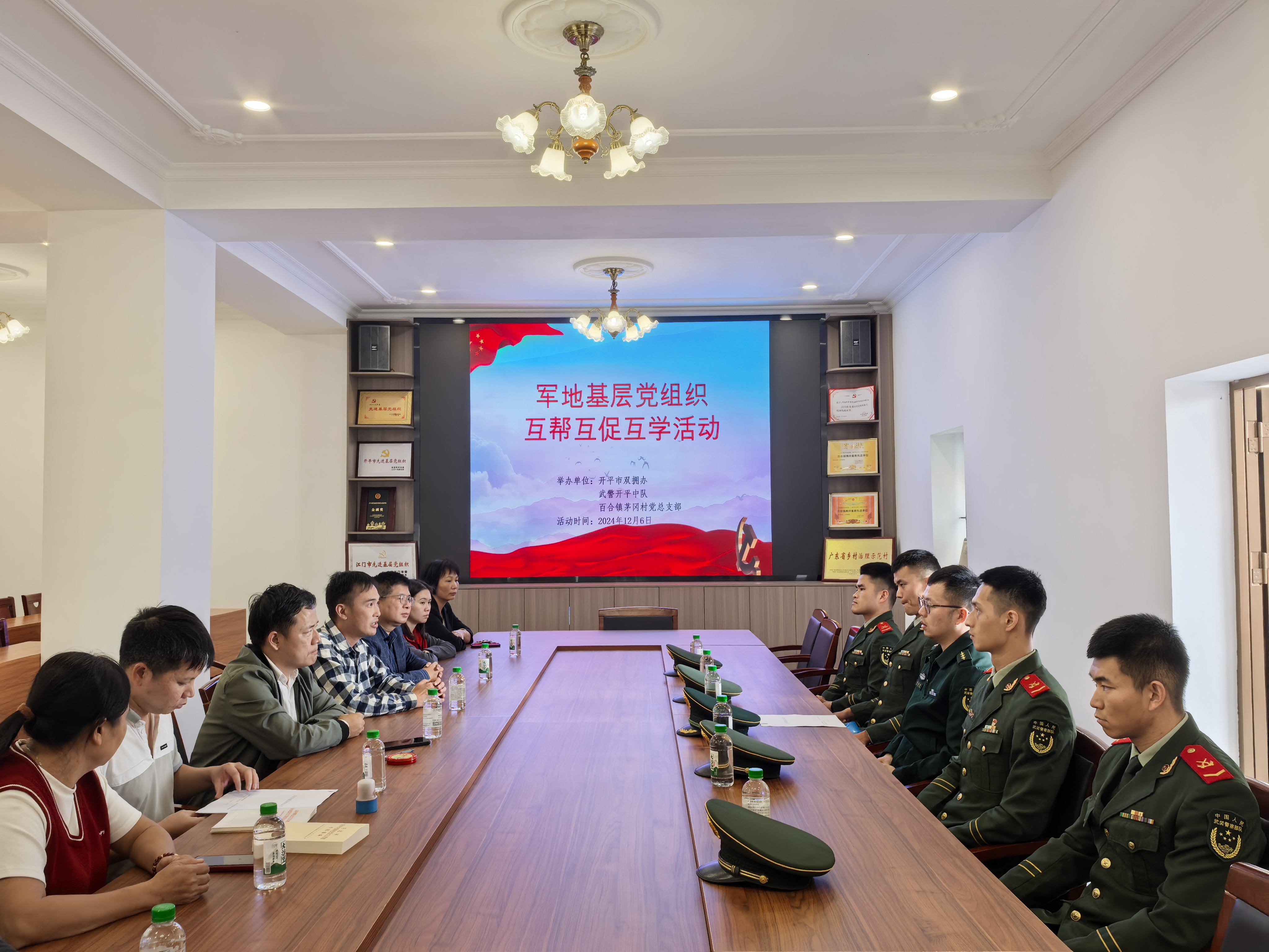 為促進(jìn)軍地融合發(fā)展,推動(dòng)“百千萬工程”走深走實(shí),近日,武警開平中隊(duì)走進(jìn)中組部關(guān)于推動(dòng)紅色村組織振興建設(shè)共色美麗鄉(xiāng)村試點(diǎn)項(xiàng)目之一的茅岡村,與茅岡村黨總支部開展一場(chǎng)軍地基層黨組織互幫互學(xué)互促活動(dòng),深化軍地基層黨組織建設(shè)。