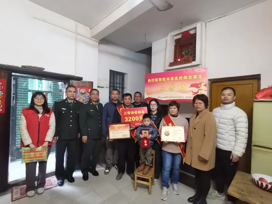 一封喜報(bào)傳佳訊,一席關(guān)懷暖人心。開平市人武部、市退役軍人事務(wù)局、長(zhǎng)沙街道辦事處武裝部及退役軍人服務(wù)站組隊(duì)給榮立三等功的吳兆倫的家屬送去喜報(bào)和慰問品。在熱鬧的氛圍中,送喜報(bào)隊(duì)伍為其家屬佩戴上“光榮家屬”的綬帶,并表示熱烈祝賀。家屬激動(dòng)地說:“看到孩子在部隊(duì)里有所作為,我們感到非常自豪,這是對(duì)我們家庭最大的肯定。我們會(huì)叮囑孩子在部隊(duì)繼續(xù)努力,爭(zhēng)取再立新功,不辜負(fù)家鄉(xiāng)人民的厚望?!彼拖矆?bào)隊(duì)伍與家屬親切交談,詳細(xì)詢問他們的家庭情況,解讀擁軍優(yōu)屬相關(guān)政策,并對(duì)家屬為支持國防事業(yè)作出的貢獻(xiàn)表示崇高的敬意和衷心的感謝。