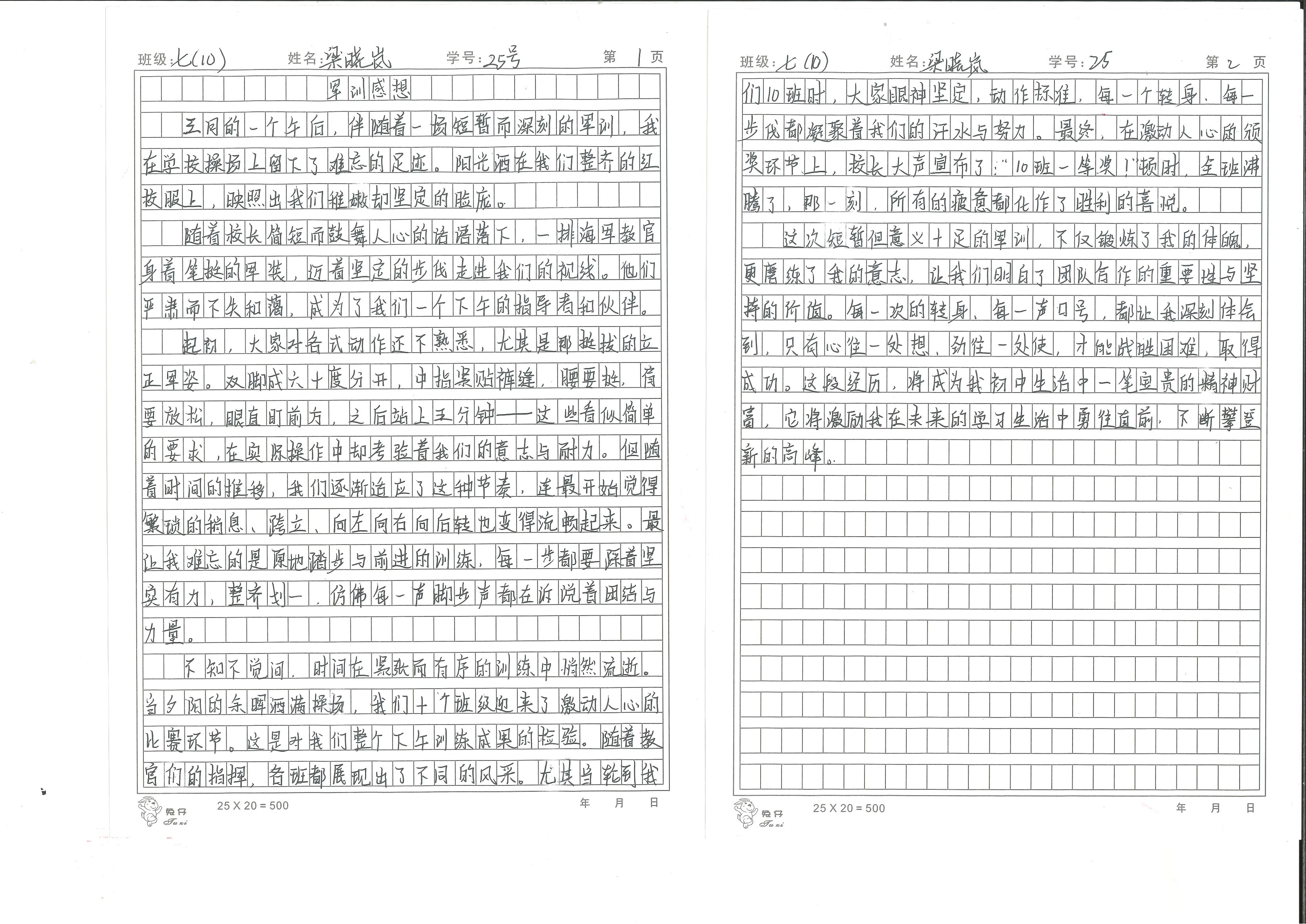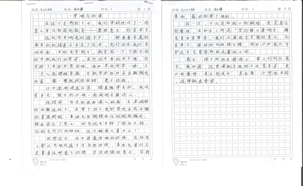 軍訓(xùn)結(jié)束后,學(xué)生們將此次經(jīng)歷轉(zhuǎn)化為筆下的動(dòng)人文字。一篇篇飽含真情實(shí)感的作文,生動(dòng)地描繪了軍訓(xùn)的艱辛與收獲,表達(dá)了對(duì)軍人的敬佩以及自身在活動(dòng)中的成長與感悟。