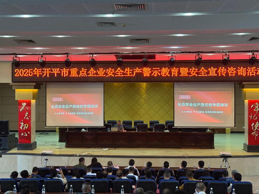 6月24日上午,由開(kāi)平市安全生產(chǎn)委員會(huì)主辦的2025年開(kāi)平市重點(diǎn)企業(yè)安全生產(chǎn)警示教育暨安全宣傳咨詢活動(dòng)在翠山湖管委會(huì)舉行。活動(dòng)共組織了各鎮(zhèn)(街)、翠山湖管委會(huì),市安委辦有關(guān)成員單位分管安全生產(chǎn)工作負(fù)責(zé)同志、我市140家重點(diǎn)企業(yè)的“第一責(zé)任人”和安全管理人員,共計(jì)300多人參加,推動(dòng)從業(yè)人員和社會(huì)公眾進(jìn)一步強(qiáng)化安全意識(shí),筑牢安全防線。開(kāi)平市領(lǐng)導(dǎo)李青汶?yún)⒓踊顒?dòng)。 今年6月是第24個(gè)全國(guó)“安全生產(chǎn)月”,主題為“人人講安全