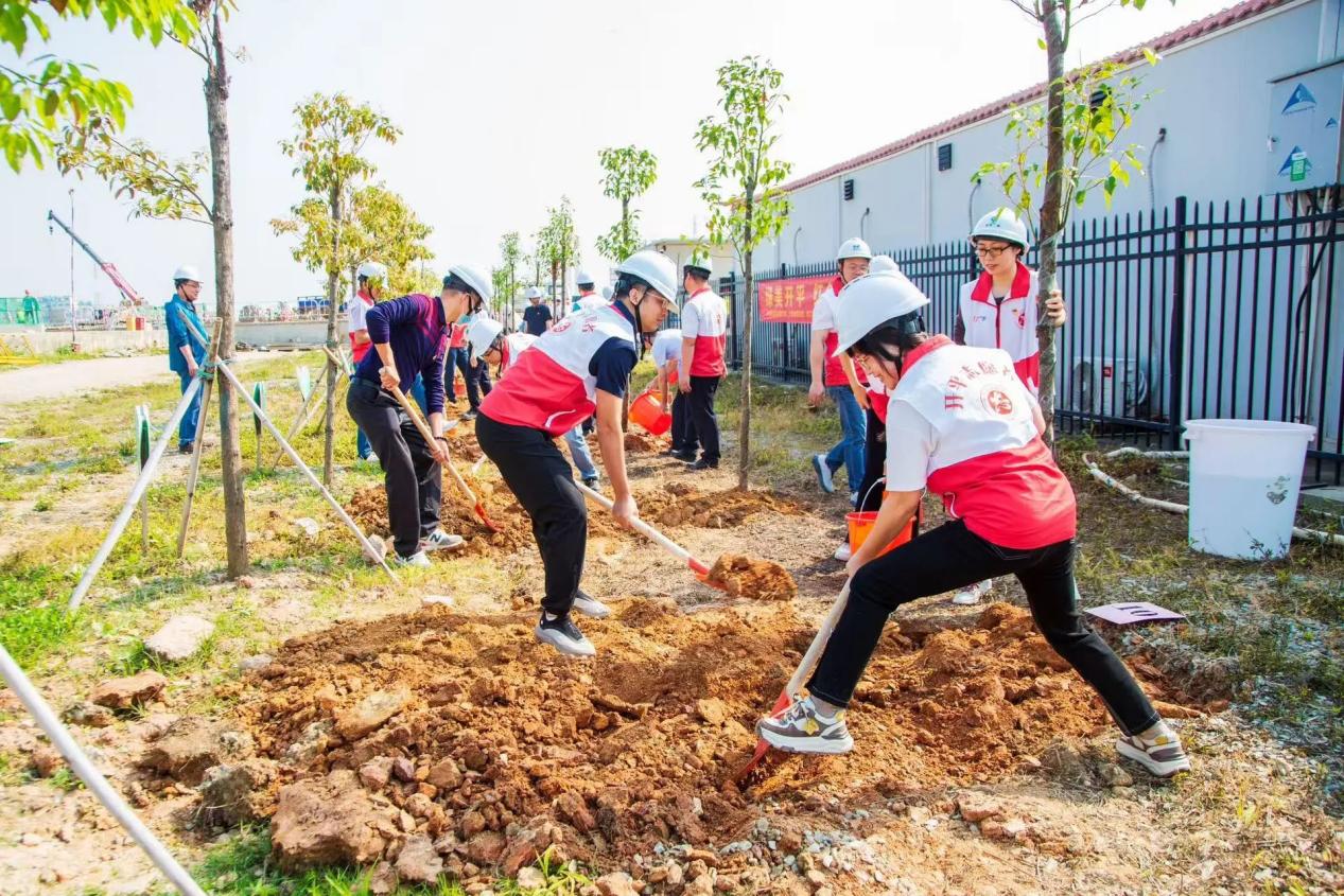 春風(fēng)送暖萬(wàn)物蘇,植樹(shù)播綠惠千秋。為深入學(xué)習(xí)貫徹習(xí)近平生態(tài)文明思想,貫徹落實(shí)綠美廣東生態(tài)建設(shè)部署,3月25日上午,市城投集團(tuán)、三埠港合營(yíng)公司、珠江貨運(yùn)代理公司以黨支部聯(lián)建共建活動(dòng)為契機(jī),在三埠新港港區(qū)聯(lián)合開(kāi)展了義務(wù)植樹(shù)主題黨日活動(dòng),以實(shí)際行動(dòng)為“百千萬(wàn)工程”增“綠”賦能,為生態(tài)文明建設(shè)貢獻(xiàn)力量。 活動(dòng)現(xiàn)場(chǎng),全體黨員熱情高漲,干勁十足,大家按照組別分工協(xié)作、默契配合,從揮鍬鏟土到扶苗填坑,從提水澆灌到培土夯實(shí),每一個(gè)環(huán)節(jié)都認(rèn)真細(xì)致、一絲不茍。在大家的共同努力下,一棵棵希望之苗“安家落戶”,為三埠新港帶來(lái)了新的生機(jī)與活力,“黨建紅”和“環(huán)保綠”在明媚的陽(yáng)光中煥發(fā)出蓬勃生機(jī)。 本次植樹(shù)活動(dòng)不僅是一次綠化行動(dòng),更是貫徹綠色發(fā)展理念、推進(jìn)生態(tài)文明建設(shè)的又一次生動(dòng)實(shí)踐,下階段,城投集團(tuán)公司將始終堅(jiān)持黨建引領(lǐng),積極履行社會(huì)責(zé)任,持續(xù)深化國(guó)企間的共建合作,以實(shí)際行動(dòng)守護(hù)“綠水青山”,為筑牢港區(qū)綠色生態(tài)屏障、打造“綠美開(kāi)平”貢獻(xiàn)城投力量。
