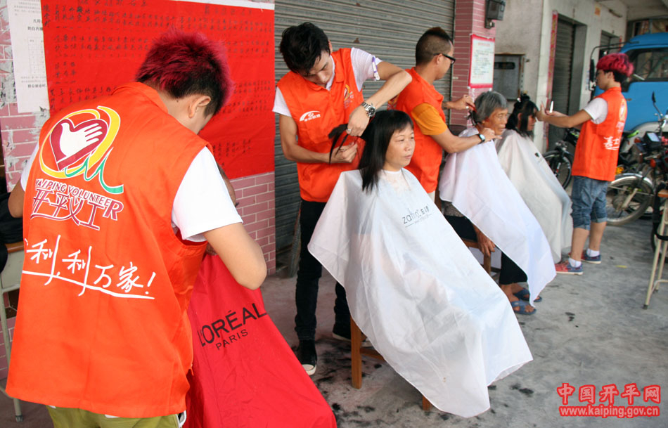 據(jù)悉,這是義工聯(lián)首次組織社區(qū)義工到鄉(xiāng)鎮(zhèn)開展活動。早上八點(diǎn)左右,僑園社區(qū)15名義工攜帶相關(guān)的活動工具來到塘口鎮(zhèn),在距離鎮(zhèn)政府不到3公里的魁崗村陳氏大樓布置現(xiàn)場。大樓門口四張椅子一字排開,義剪隊為村民理發(fā),還有“導(dǎo)師”負(fù)責(zé)現(xiàn)場指導(dǎo)學(xué)員;樓內(nèi)原始點(diǎn)按摩義工隊為有需要的群眾進(jìn)行按摩。