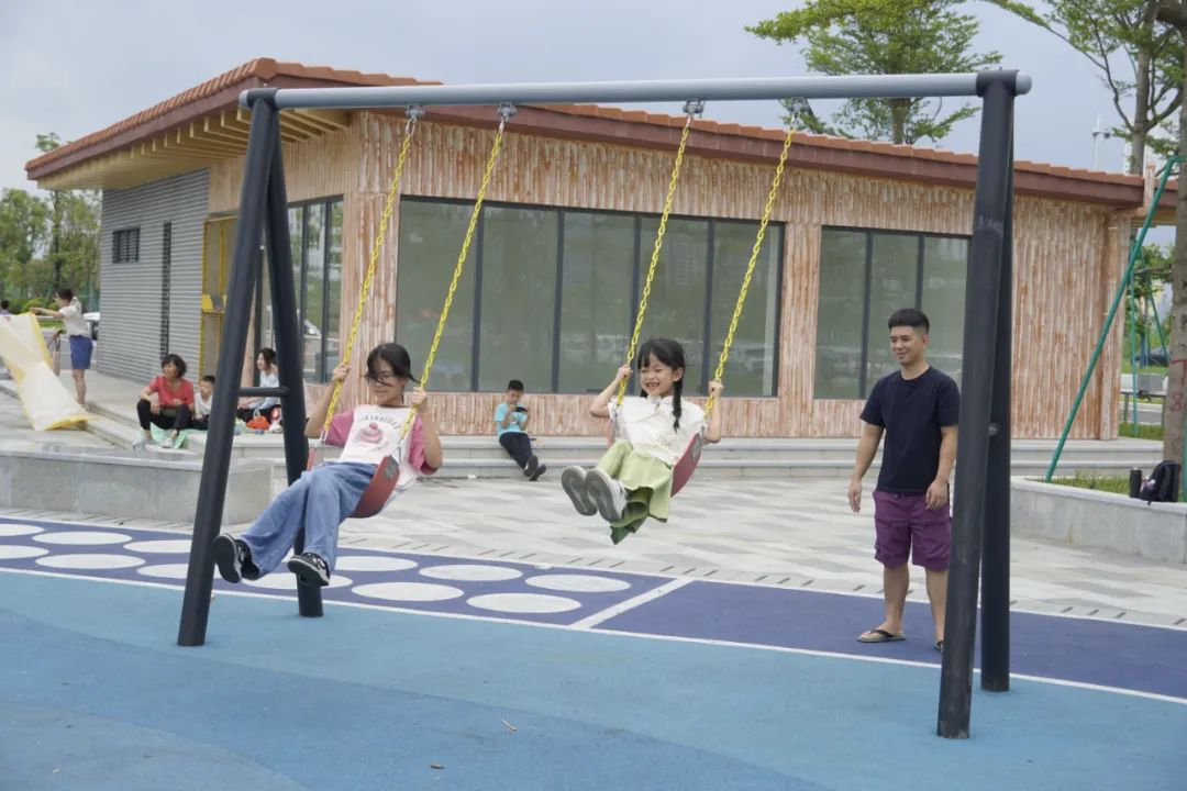 樂(lè)園面積約1630平方米,設(shè)置有大魚滑梯、兒童健身器材、蹦床、秋千等豐富多樣的兒童游玩設(shè)施,深受大朋友、小朋友喜愛。不少家長(zhǎng)表示,漁趣樂(lè)園為家庭親子活動(dòng)提供了一個(gè)理想場(chǎng)所。