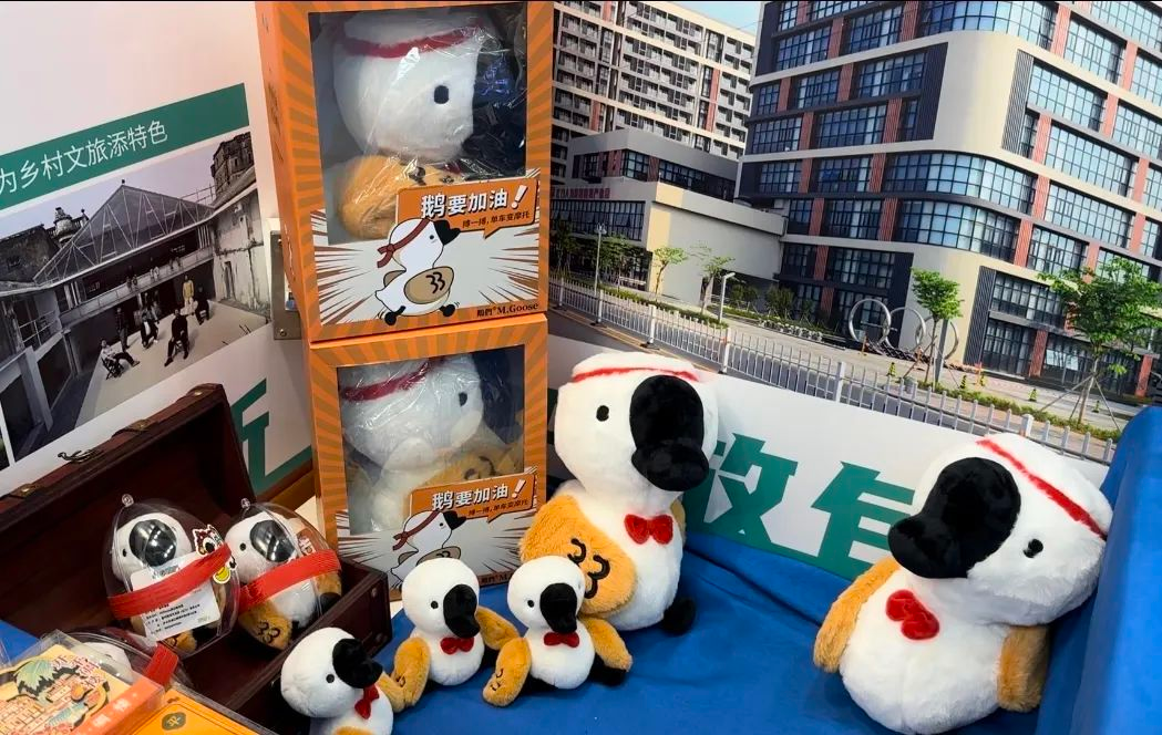 展區(qū)同時還邀請了入駐基地的創(chuàng)業(yè)項(xiàng)目主理人參展,來自香港的“鵝們藏寶圖”的主理人譚國萍帶著她可愛的“阿呆”毛絨公仔亮相,“阿呆”以開平馬岡鵝為創(chuàng)作原型,結(jié)合燒鵝、五味鵝等美食的元素,可愛有趣的可吸附設(shè)計(jì),吸引了眾多求職者的目光?!跋M魑粠煹軒熋脗?,能帶著我們文創(chuàng)產(chǎn)品,來到開平,去逛我們的碉樓糧倉、赤坎古鎮(zhèn),去吃我們的馬岡鵝、豆腐角,去創(chuàng)業(yè)、去就業(yè)、去實(shí)現(xiàn)你自己的夢想?!弊T國萍說道。