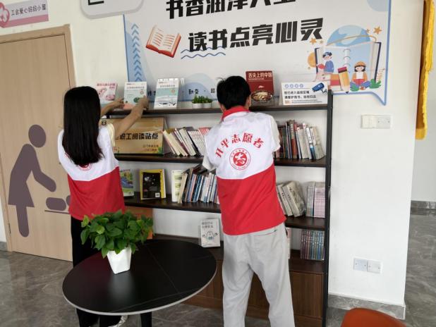 煥新職工書屋,共筑書香家園。8月20日,青年黨員來到S275蜆岡服務區(qū)便民閱讀點進行書籍整理,有的負責分類整理書籍,有的擦拭書架書桌,清除積塵,還有的負責檢查書籍完好度,將破損書籍登記存檔,以便后續(xù)修補,青年黨員分工協作又互相配合,用實際行動為服務區(qū)的書香空間“煥新顏”。