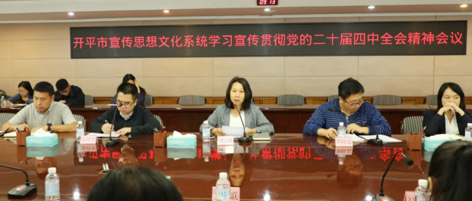 10月29日上午,開平市委宣傳部組織召開全市宣傳文化系統(tǒng)學(xué)習(xí)宣傳貫徹黨的二十屆四中全會精神專題會議,傳達(dá)學(xué)習(xí)習(xí)近平總書記在黨的二十屆四中全會上的重要講話和全會精神,貫徹落實(shí)省委、江門市委、開平市委有關(guān)會議精神,研究全市宣傳文化系統(tǒng)貫徹落實(shí)措施。市委常委、宣傳部部長周寶珠出席并講話。
