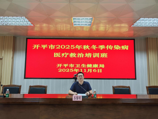為切實(shí)做好我市秋冬季傳染病防治各項(xiàng)工作,持續(xù)提升醫(yī)務(wù)人員對(duì)重點(diǎn)傳染病的早期識(shí)別、規(guī)范診療等能力,11月6日下午,開平市衛(wèi)生健康局舉辦開平市2025年秋冬季傳染病醫(yī)療救治培訓(xùn)班,全市醫(yī)療機(jī)構(gòu)分管領(lǐng)導(dǎo)及相關(guān)科室負(fù)責(zé)同志參加培訓(xùn)。