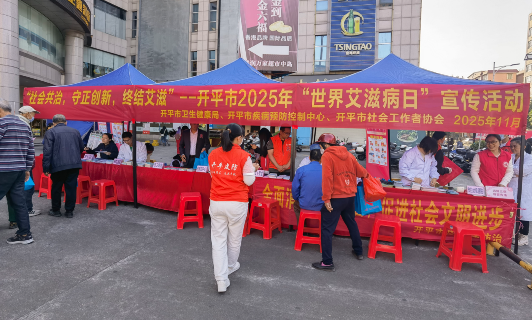 11月25日上午,在第38個(gè)“世界艾滋病日”即將到來之際,開平市衛(wèi)生健康局聯(lián)合市疾病預(yù)防控制中心、市社會(huì)工作者協(xié)會(huì)等相關(guān)部門單位,在長沙街道益華廣場開展主題宣傳活動(dòng),普及防治知識(shí),營造全民廣泛參與艾滋病防治工作的良好氛圍。